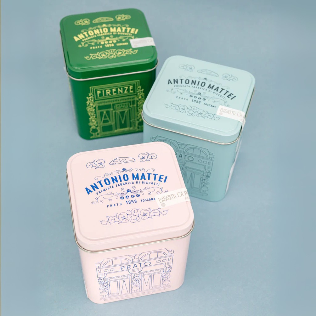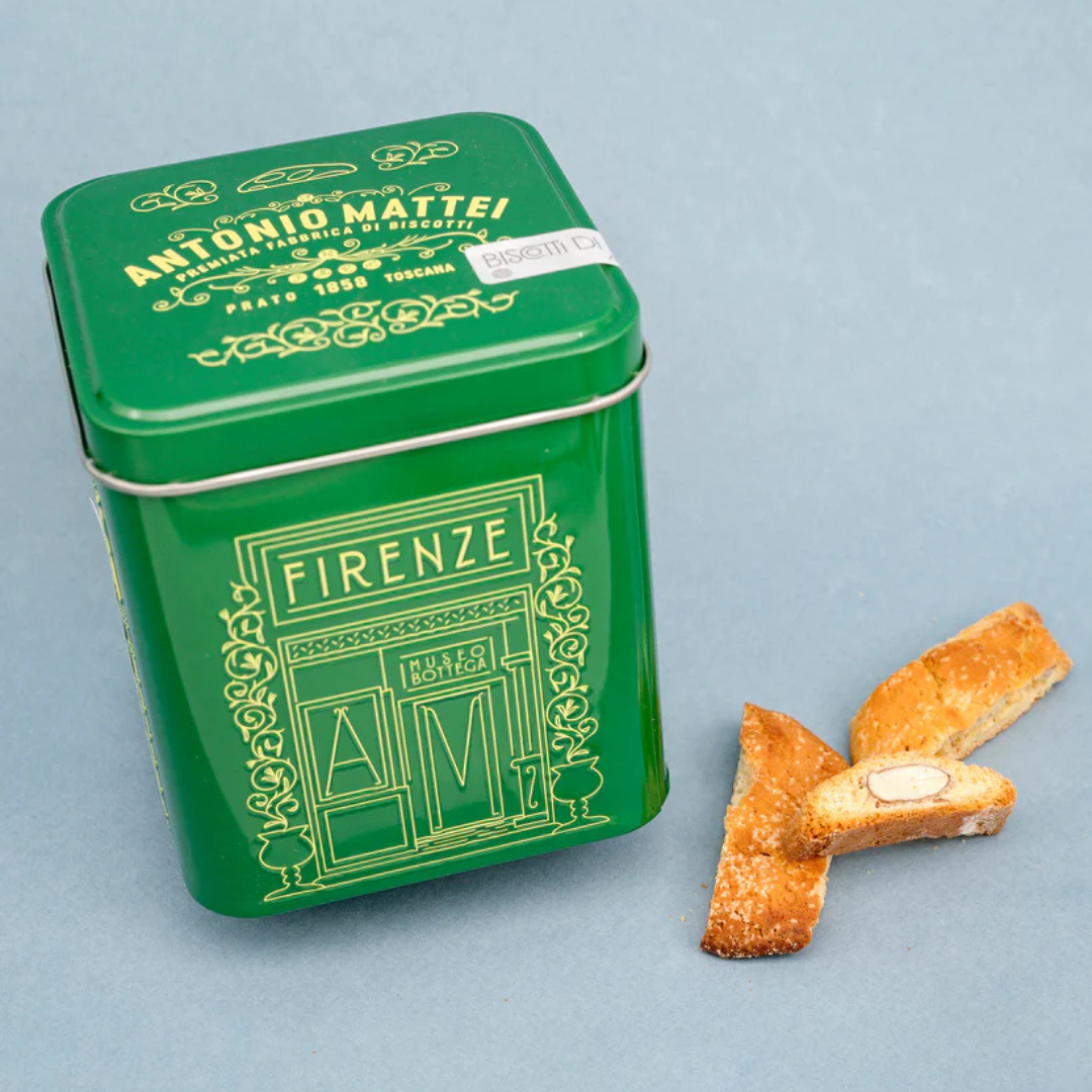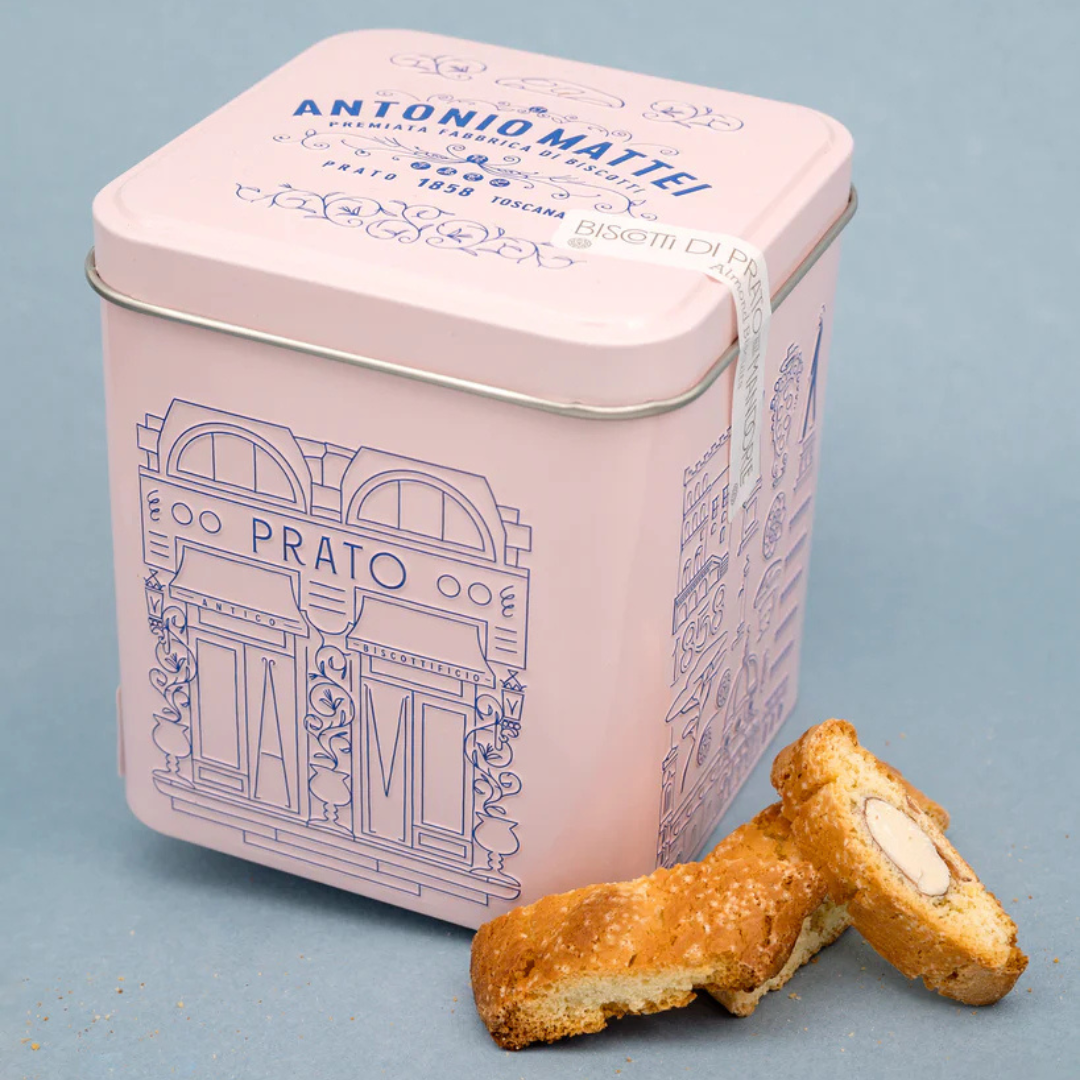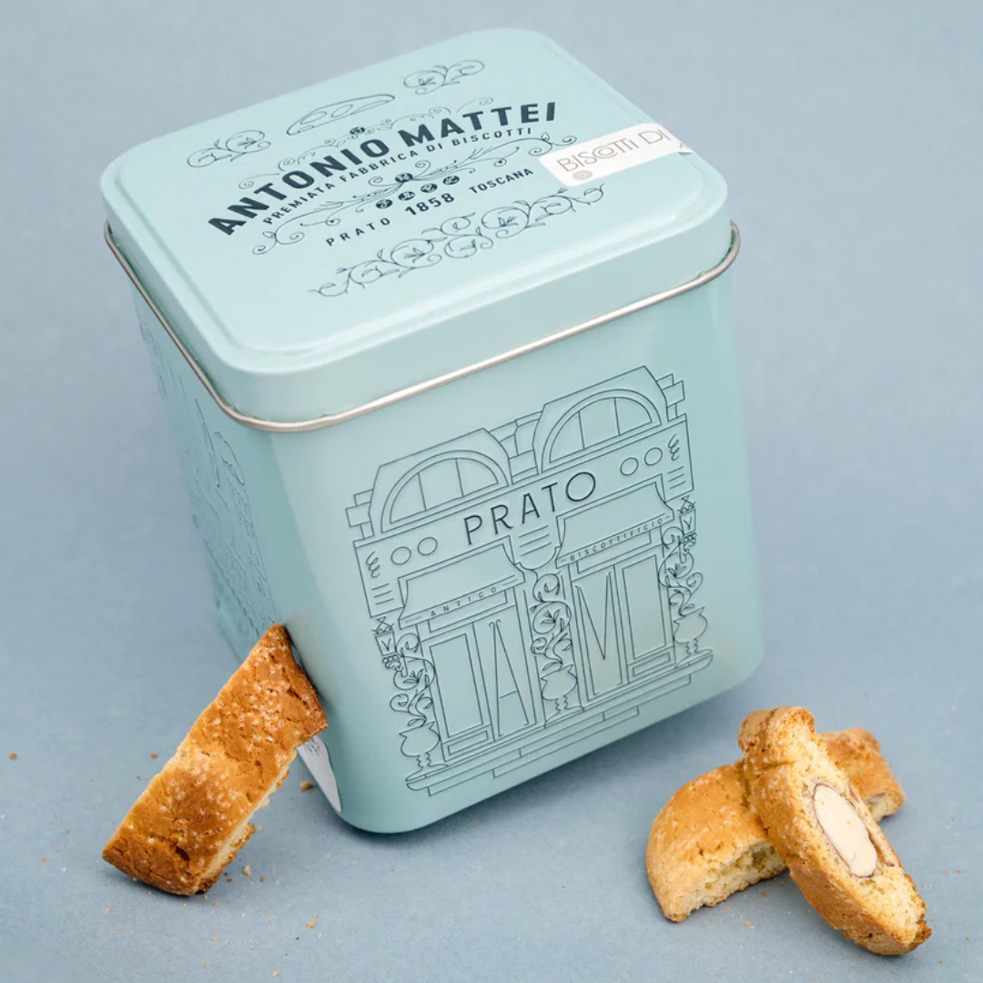 De ikoniske cantucci fra Antonio Mattei er bagt efter den originale opskrift fra 1858 i hjertet af Prato. De sprøde småkager fra Foods of Italy, med mandler og pinjekerner har en sødme, der balancerer perfekt, og de egner sig ideelt til dessertvine, kaffe eller varm chokolade.