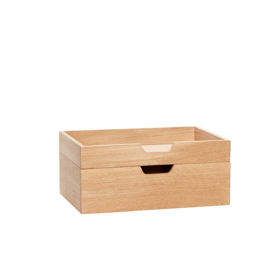 Superfin opbevaringsæske i egetræsfiner fra Hübsch. Æsken består af top og bund, som kan bruges sammen og hver for sig.