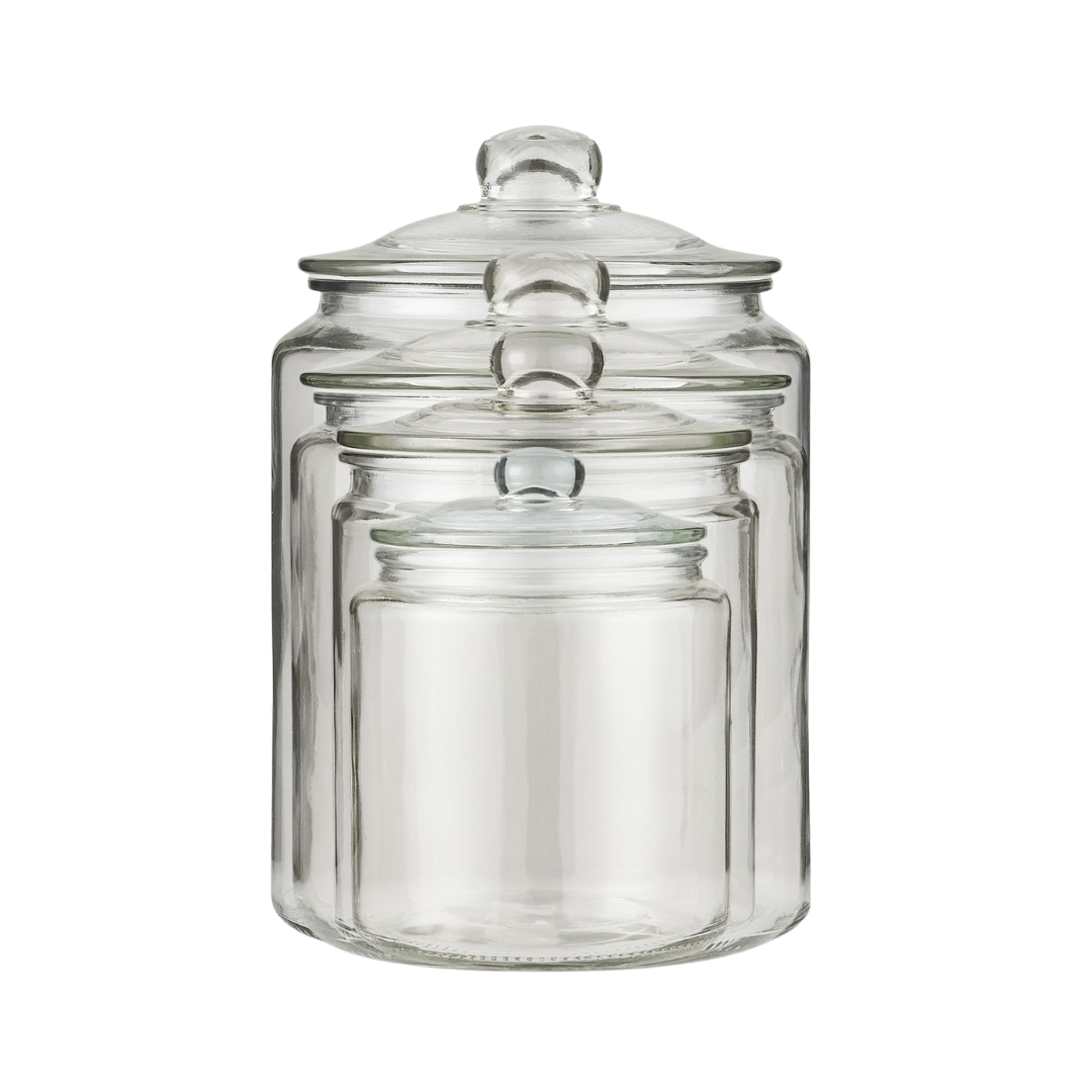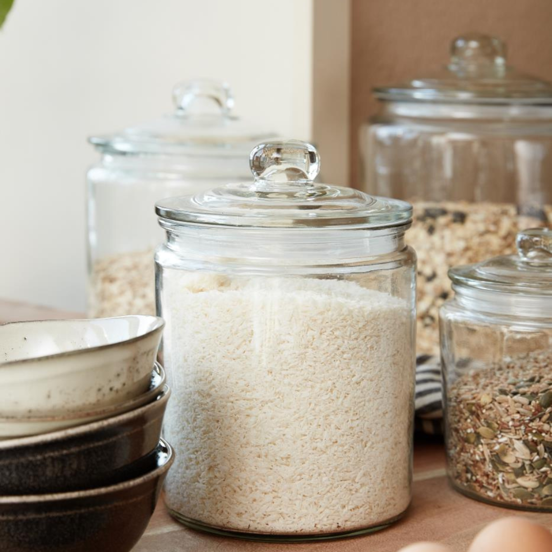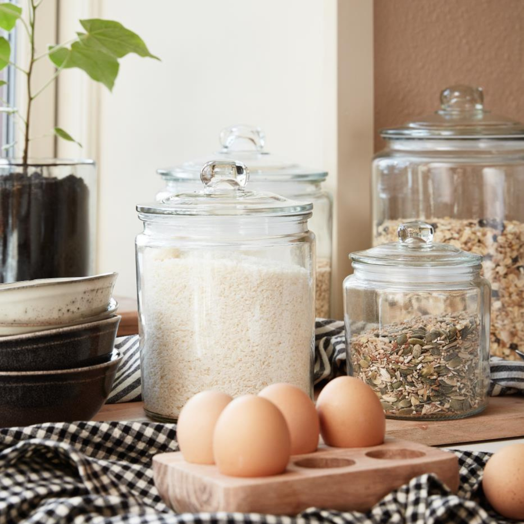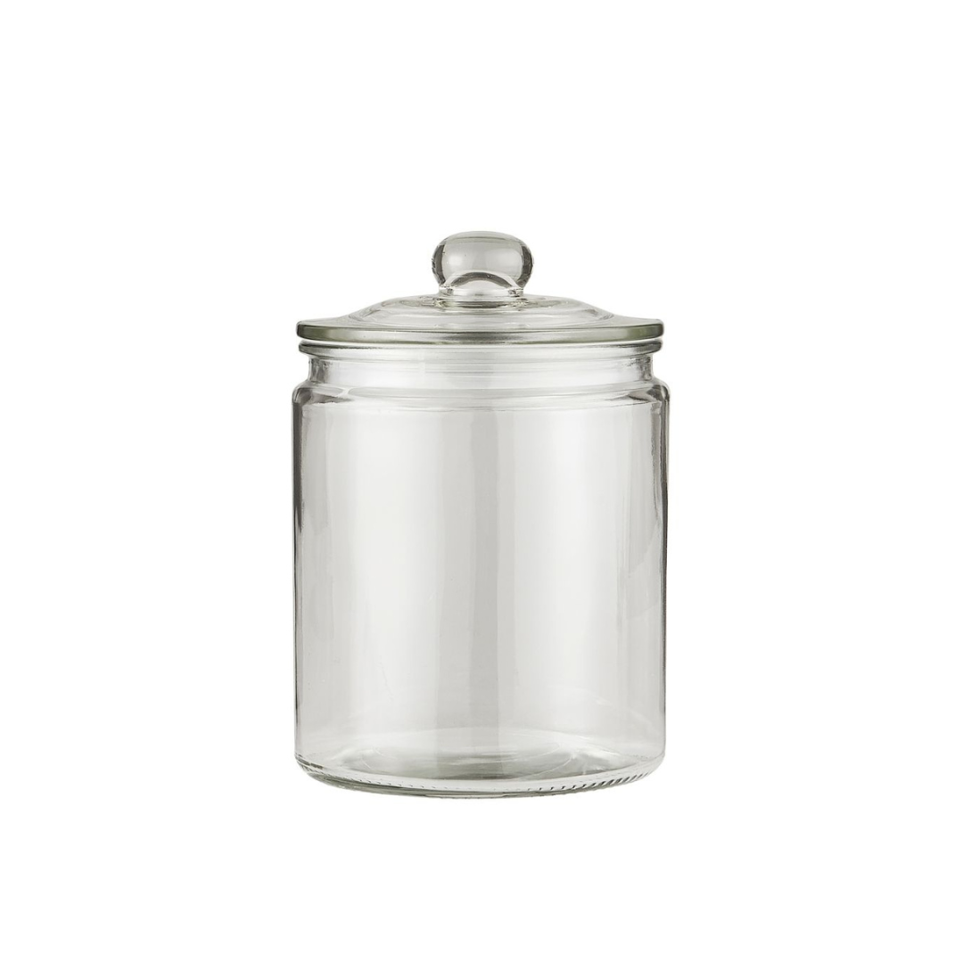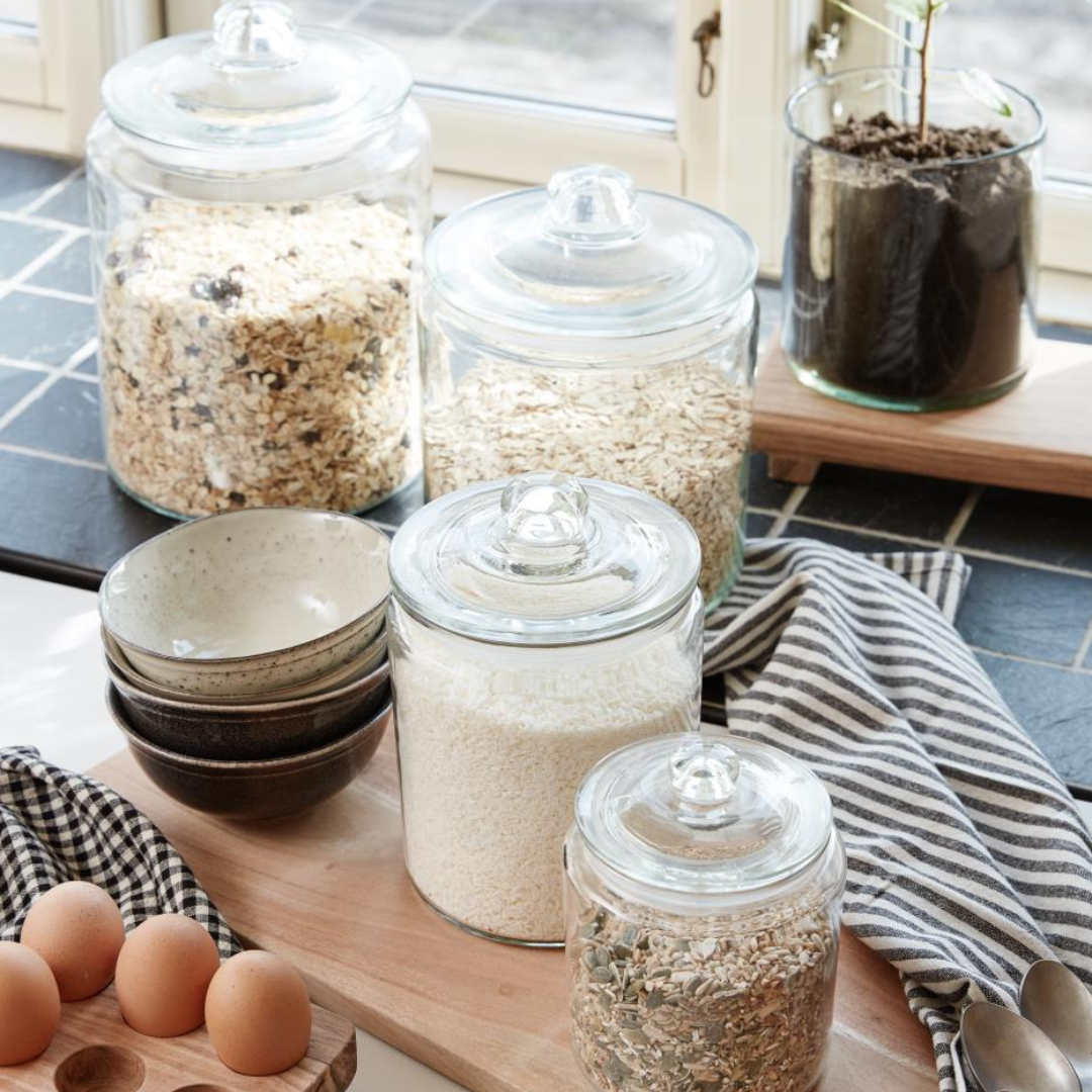 Flot glaskrukke med glaslåg fra Ib Laursen. Glaskrukken, der findes i flere størrelser, har en gummiring rundt i låget, hvilket gør at krukken slutter tæt og dermed er perfekt til f.eks. havregryn, morgenmadsprodukter, mel, pasta og alt muligt andet.