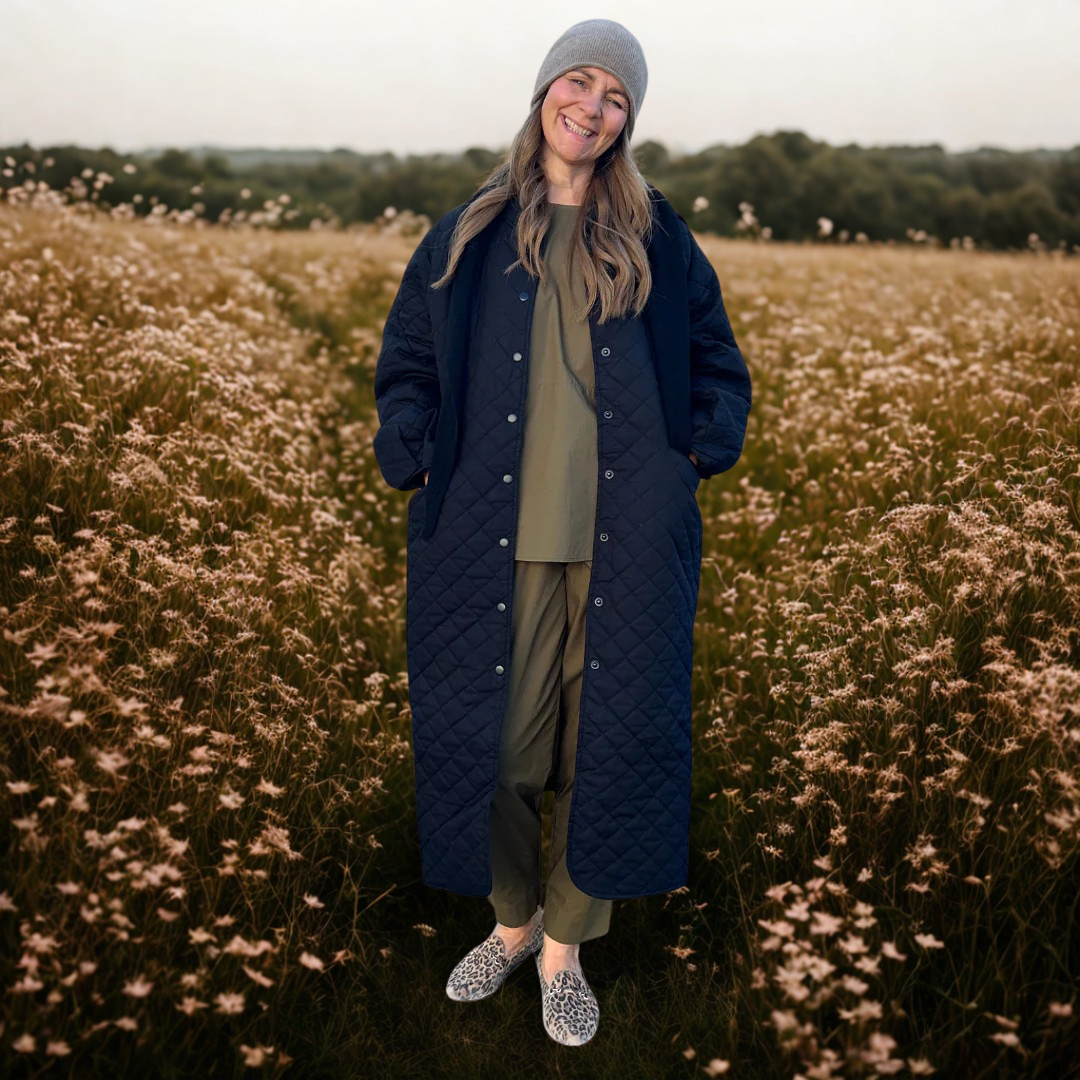 Den lange Bergen jakke fra Frau er en quiltet frakke i 100 % økologisk bomuld med tynd padding og blødt bomuldsfoer.