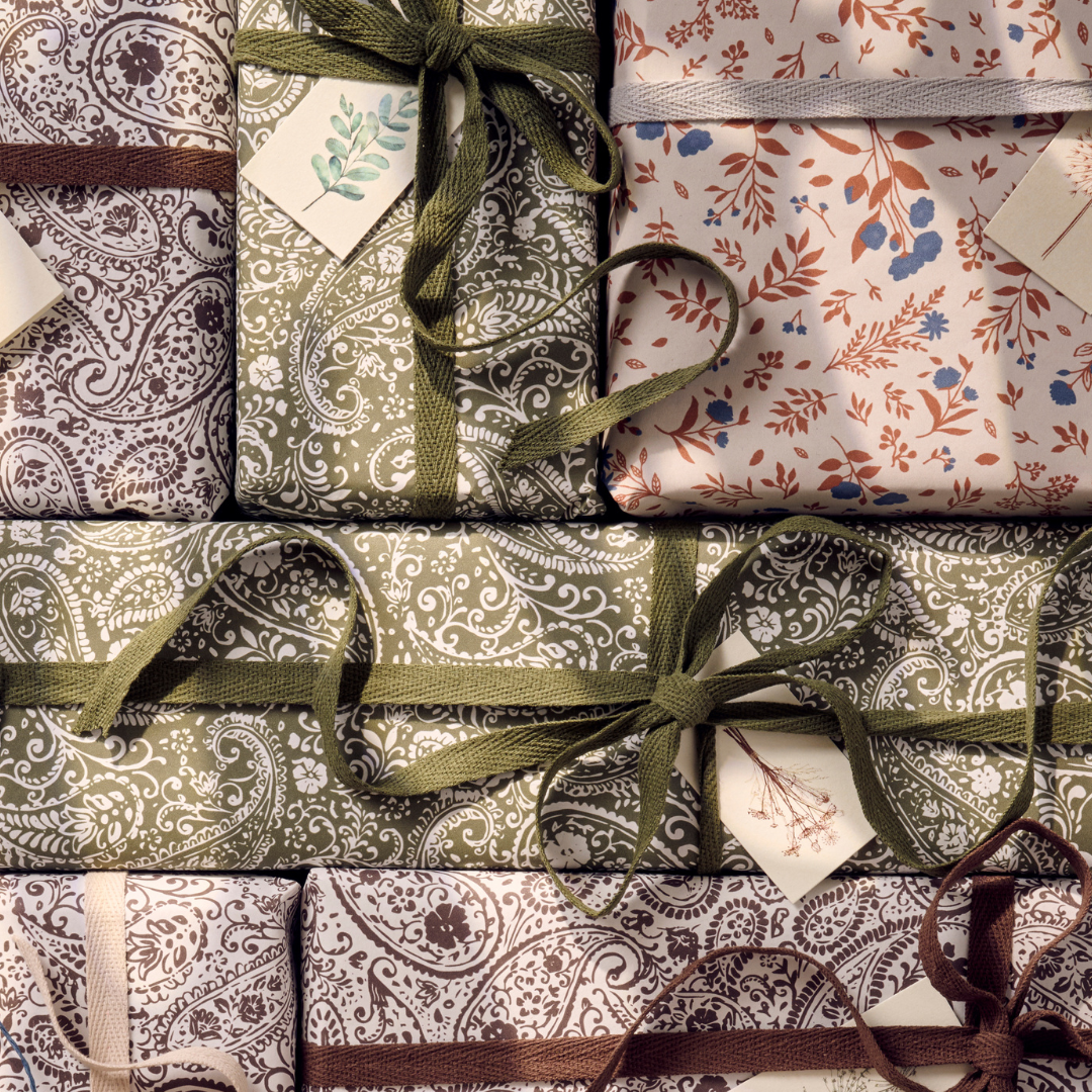 Gør dine gaver ekstra indbydende med dette smukke gavepapir i grønne nuancer og klassisk paisley-mønster fra Ib Laursen. Gavepapiret er kraftigt og skjuler indholdet, så gaven ikke afsløres, selv hvis den er mørk eller har skarpe hjørner. Det er trykt på tykt genbrugspapir, der både føles lækkert og tager hensyn til miljøet.