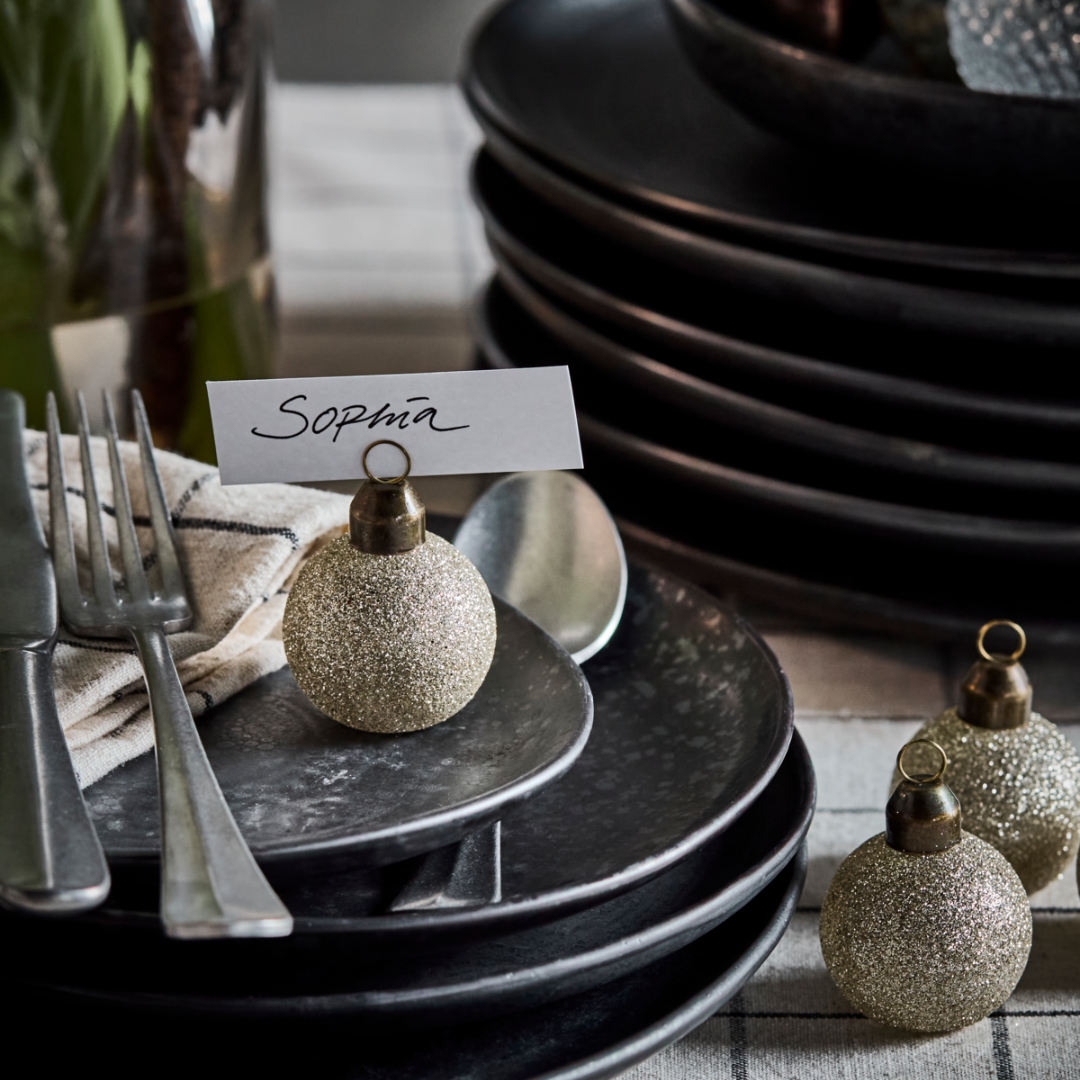 Giv din borddækning et elegant og festligt udtryk med de champagnefarvede kortholder fra House Doctor.