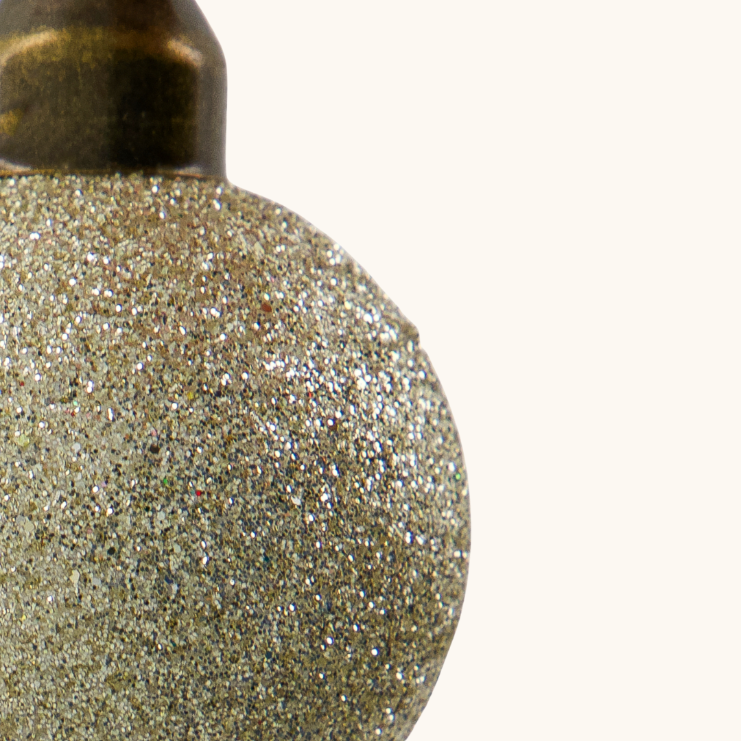 De små kugler i champagnefarvet glas har en smuk glimmerfinish, som reflekterer lyset og skaber en eksklusiv stemning.