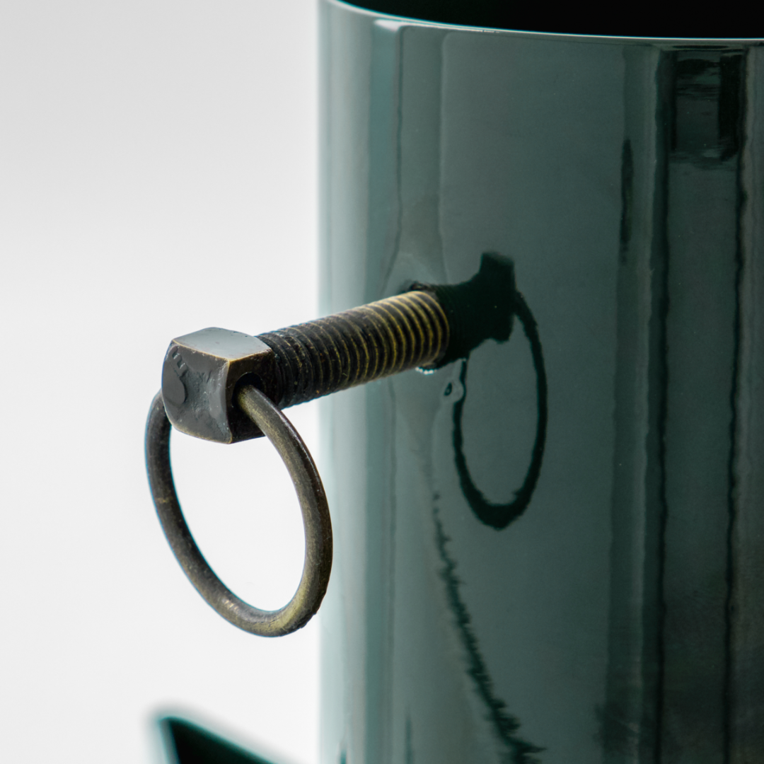Den mørkegrønne fod er formet som en 12-punktet stjerne og fremstillet i robust jern, som sikrer både stabilitet og et tidløst udtryk.