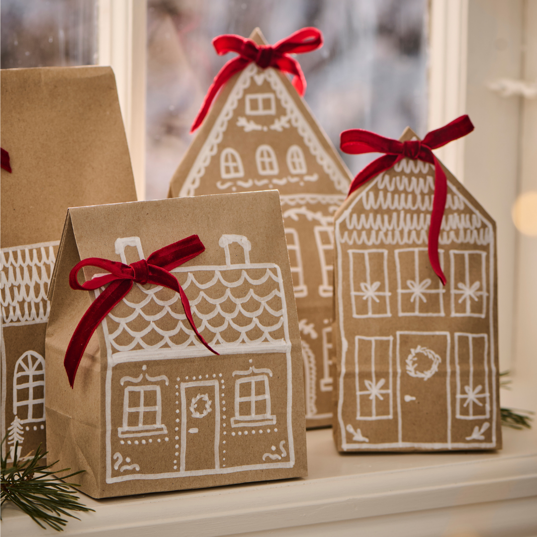 Super fin klodsbundspose i kardus papir fra Ib Laursen, som kan bruges som gavepose - særligt til gaver, som er svære at pakke ind eller som bare ikke skal kunne gættes af modtageren. Dekorer posen, så den f.eks. ligner små huse.