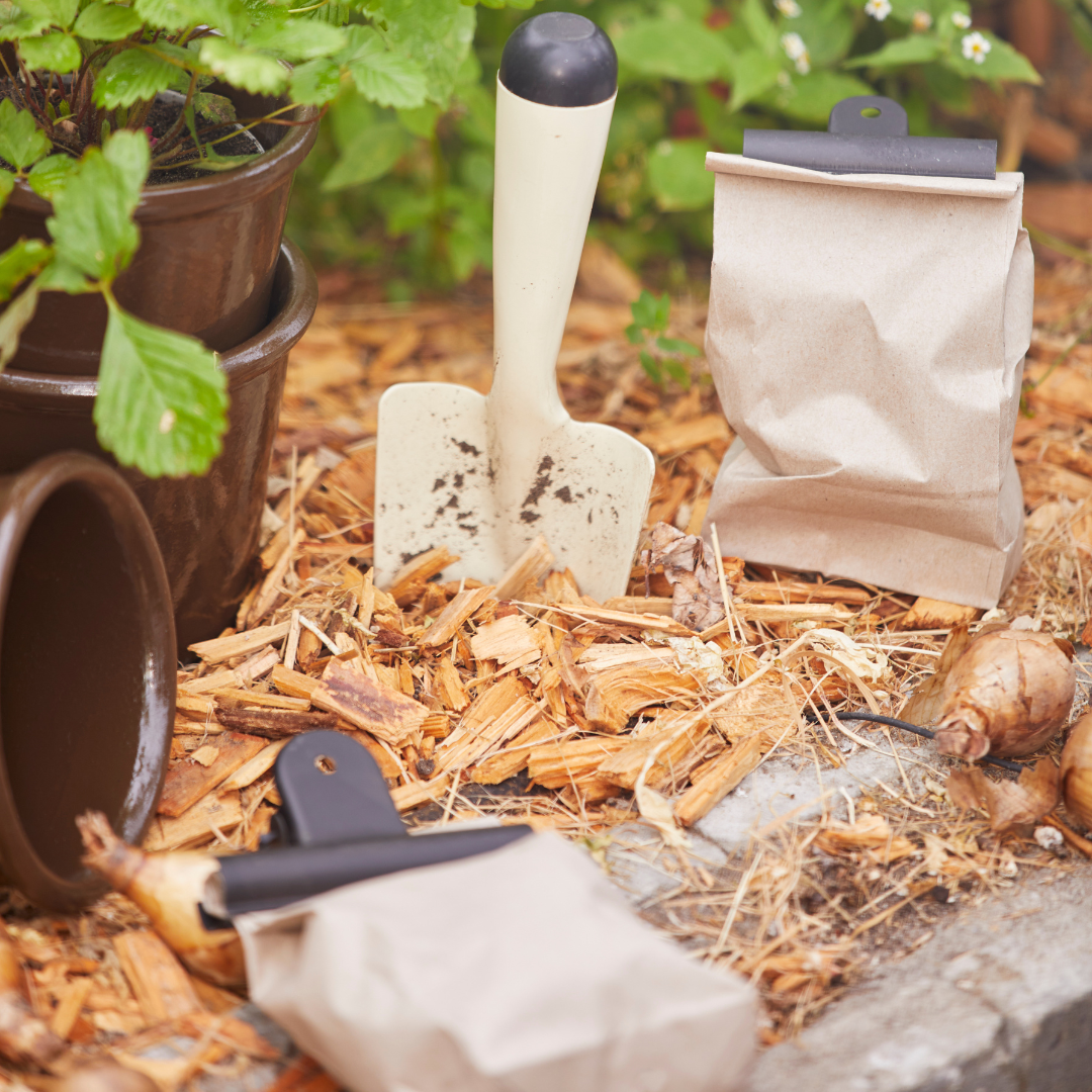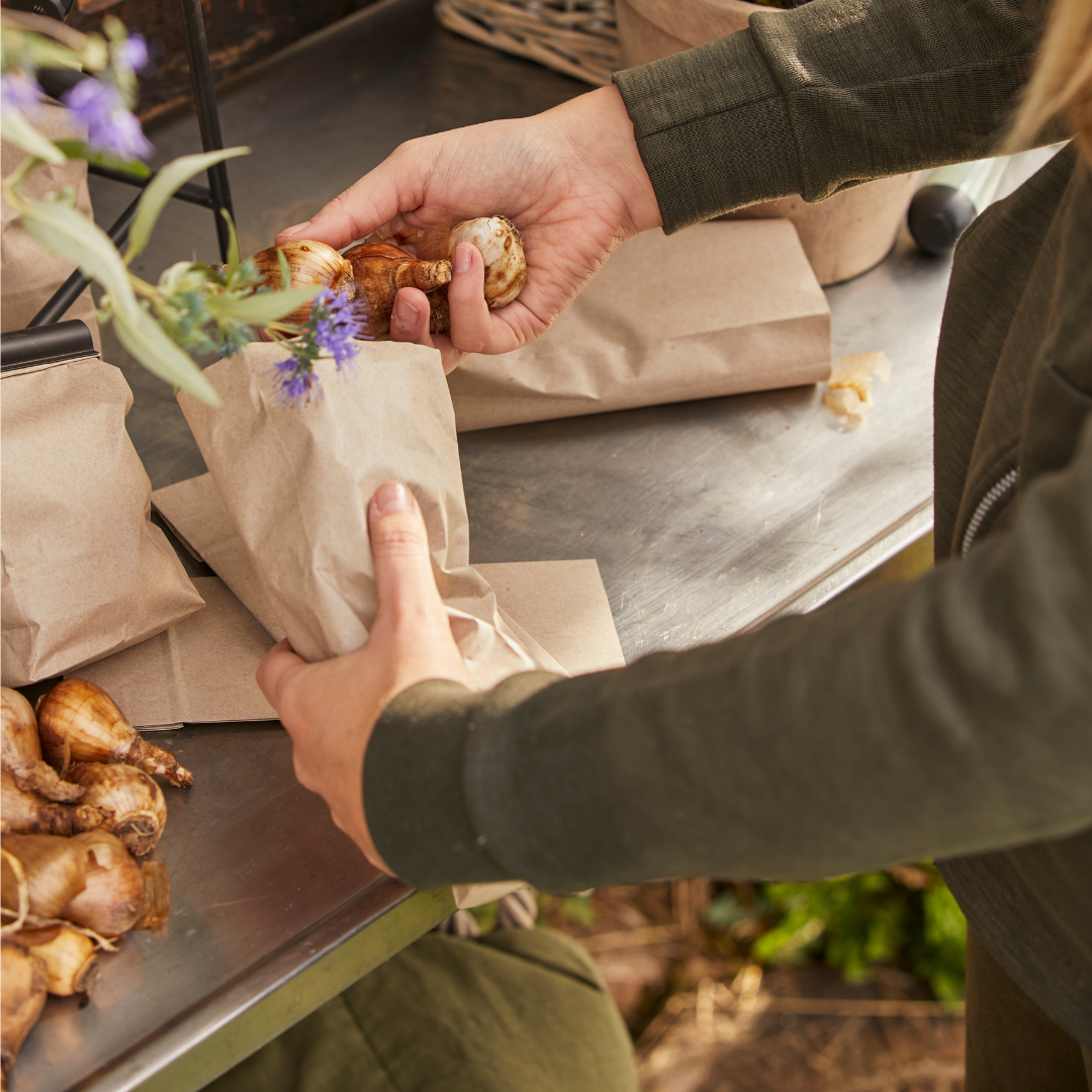 - Åbn hele bundtet af poser som en rund vifte, og fæst med en clips eller lim.