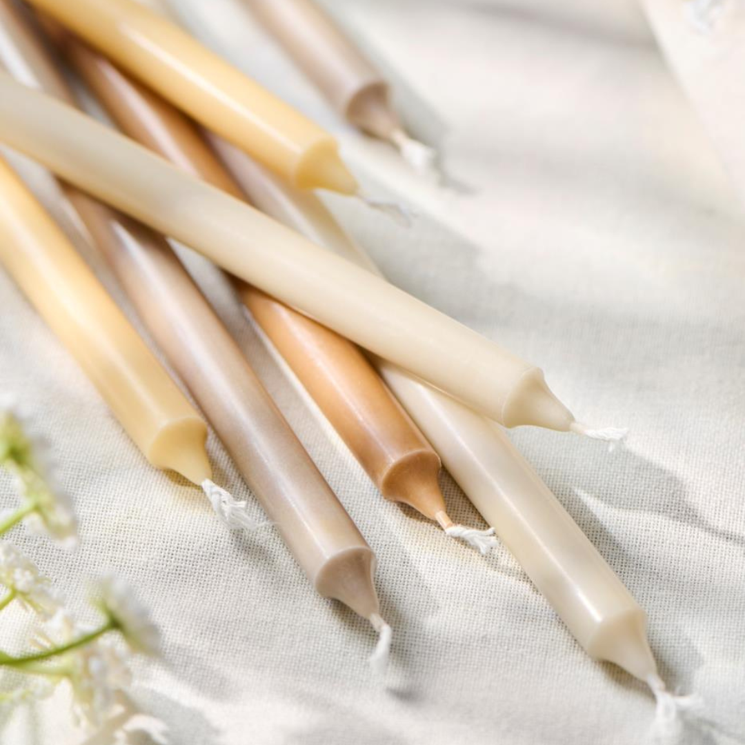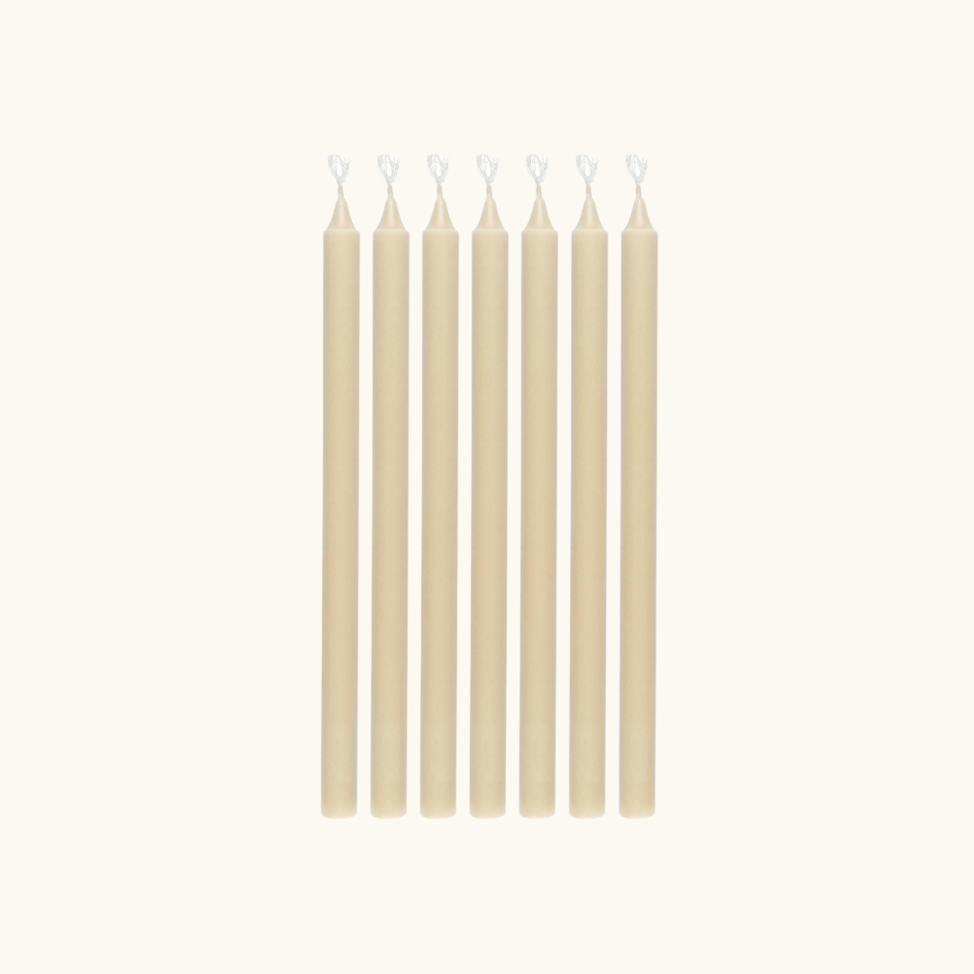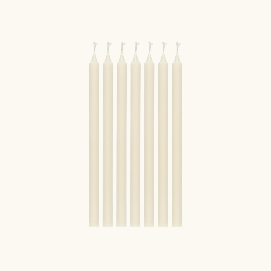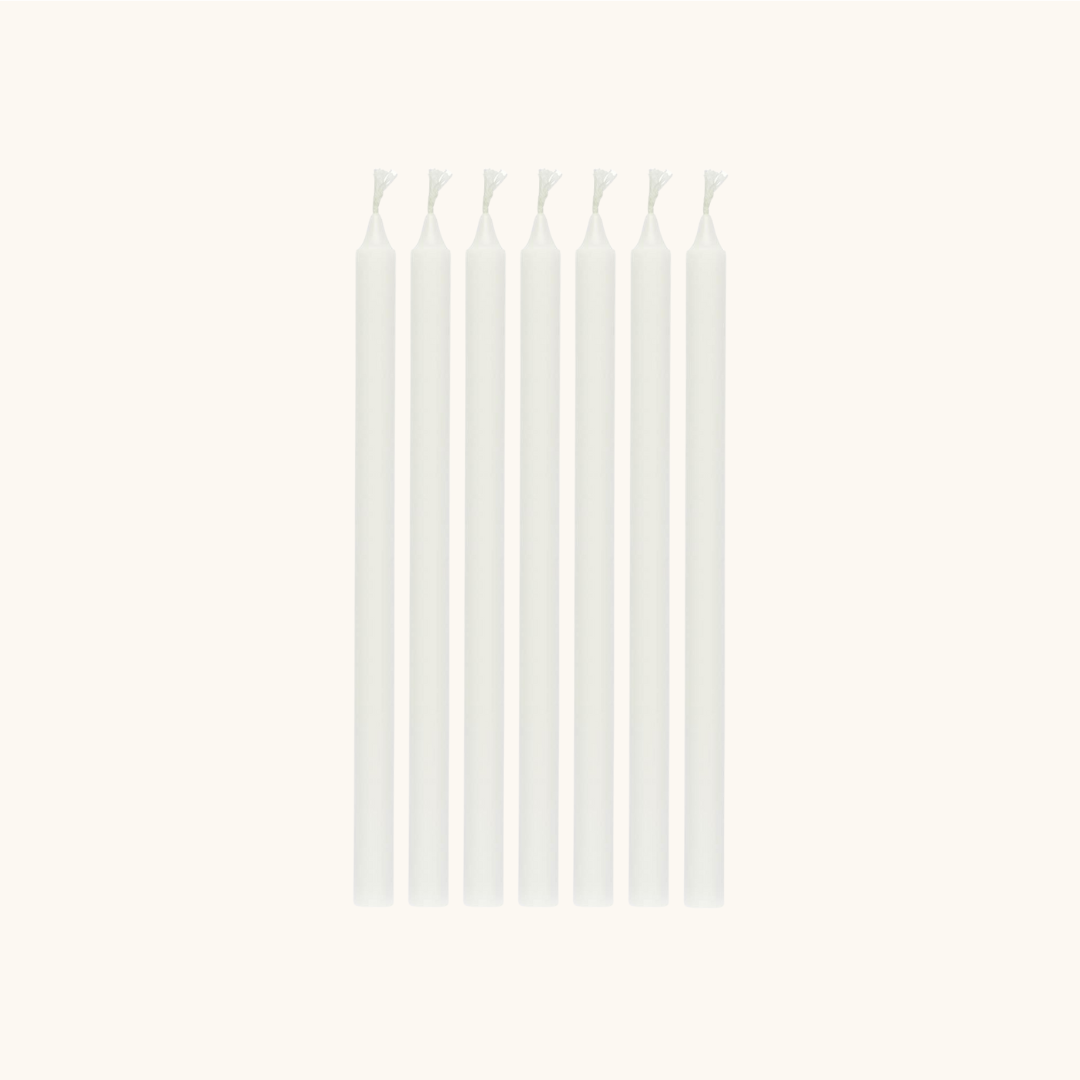 De tynde lys er perfekte til små lysestager og giver et roligt, varmt skær. Brug dem på middagsbordet, i vindueskarmen eller på badeværelset for at tilføje et strejf af hverdagsluksus.