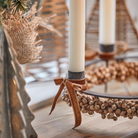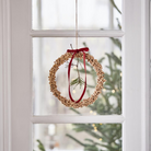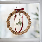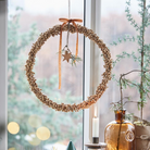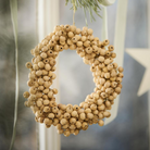 Fin og dekorativ håndlavet krans fra Ib Laursen med træperler, der vil pynte flot på en væg, dør eller et vindue i julen.