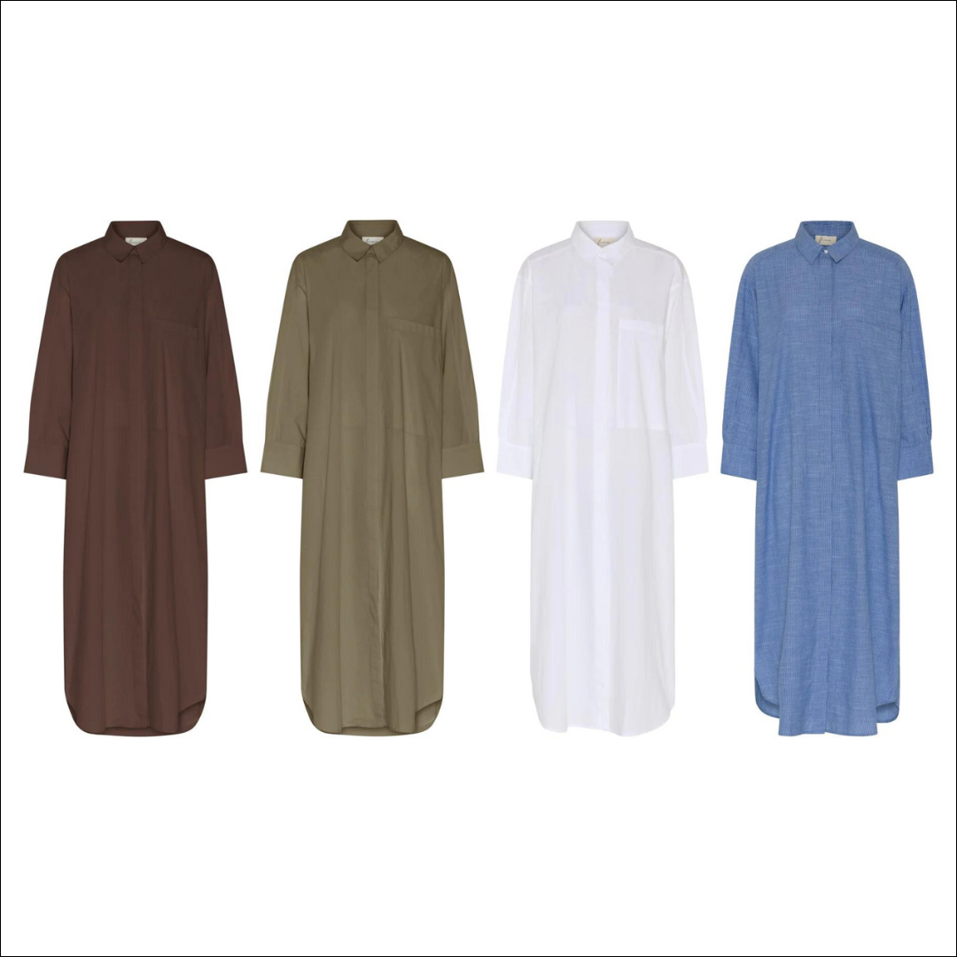 Lyon kjolen fra Frau er en lang skjortekjole med et feminint udtryk og inspiration fra den klassiske herreskjorte.