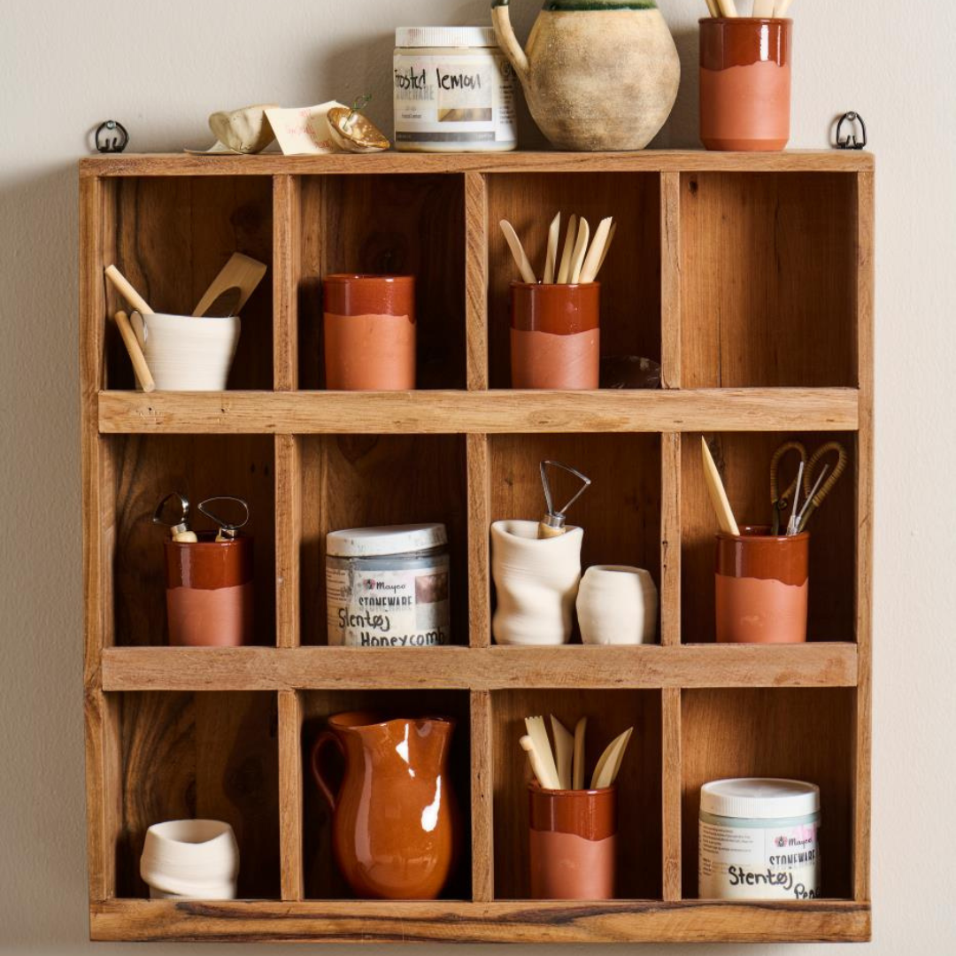 Hver reol har sit eget unikke præg i farve og struktur og tilføjer en naturlig varme til din indretning.