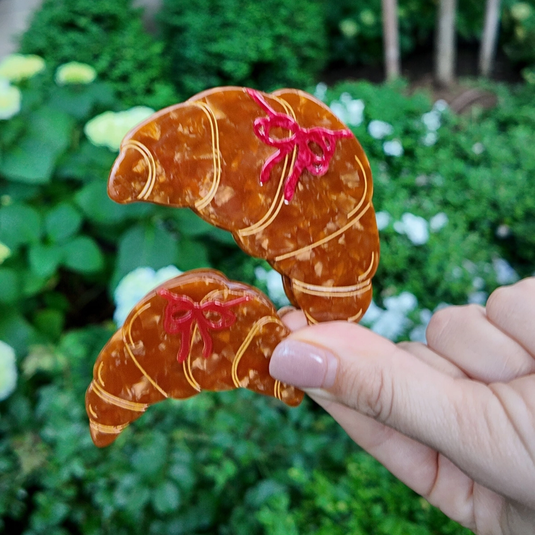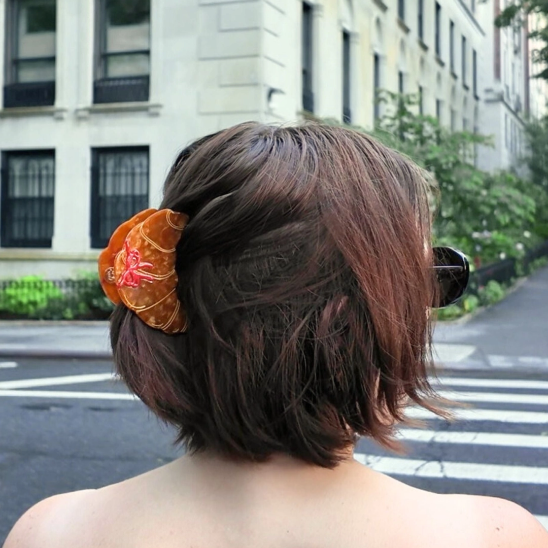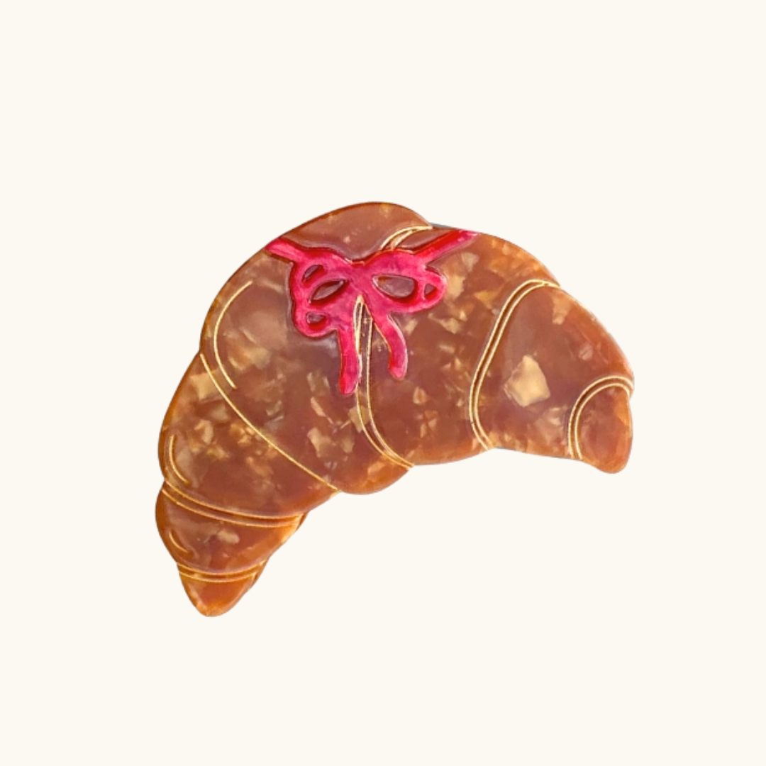 Håndmalet croissant hårklemme til hverdagens frisurer.