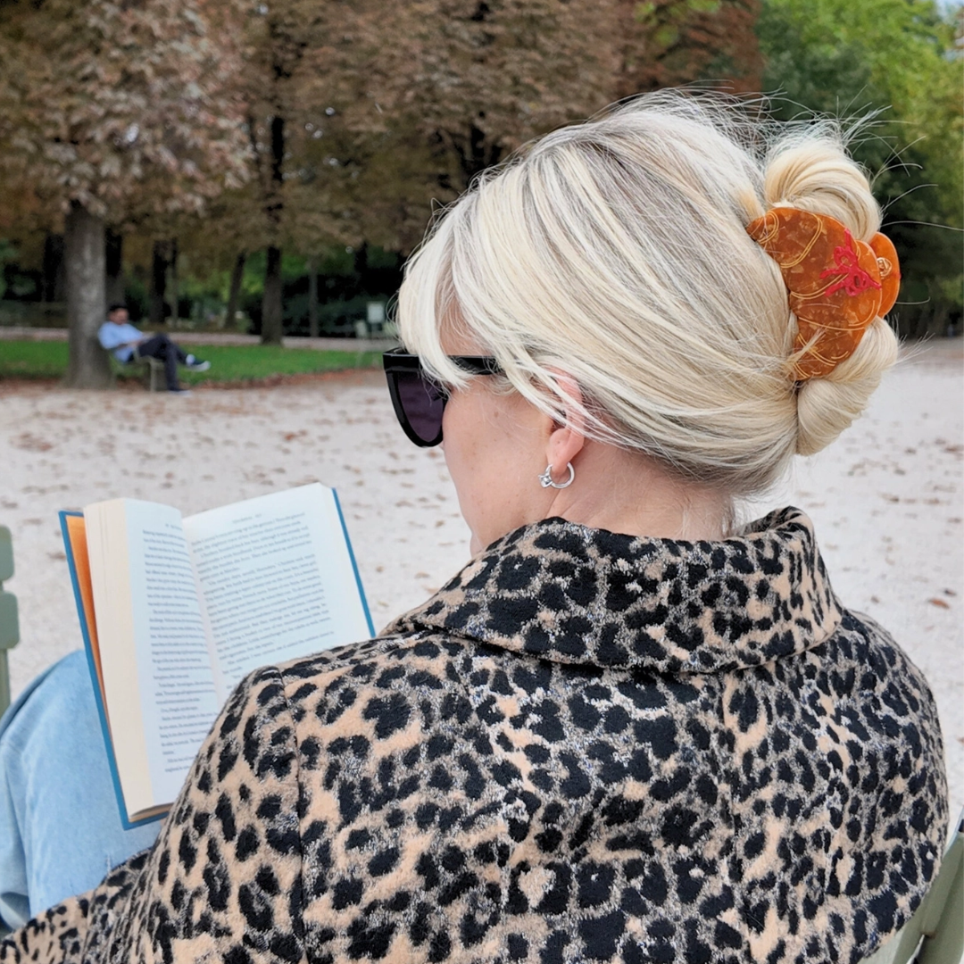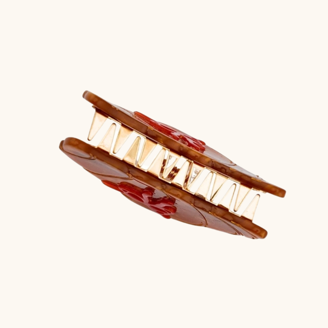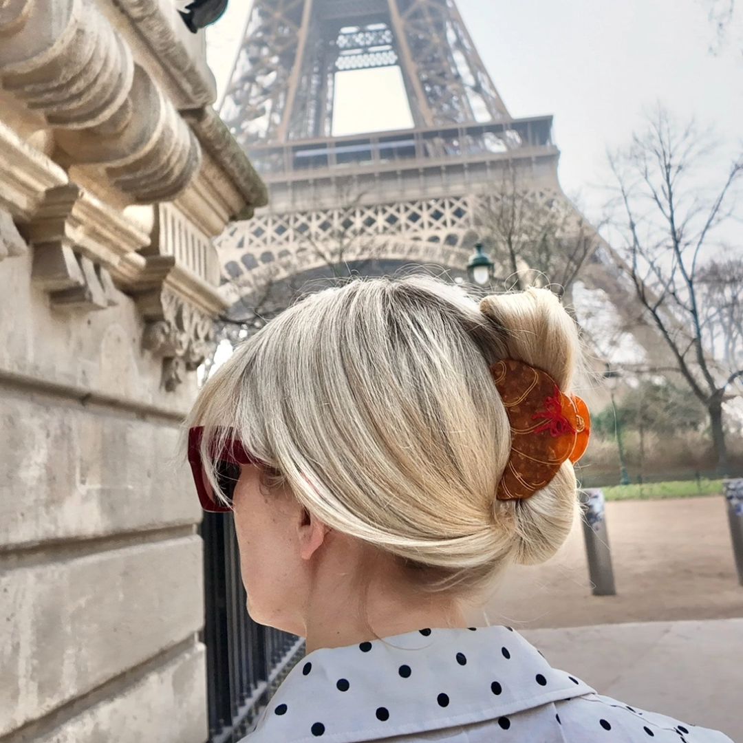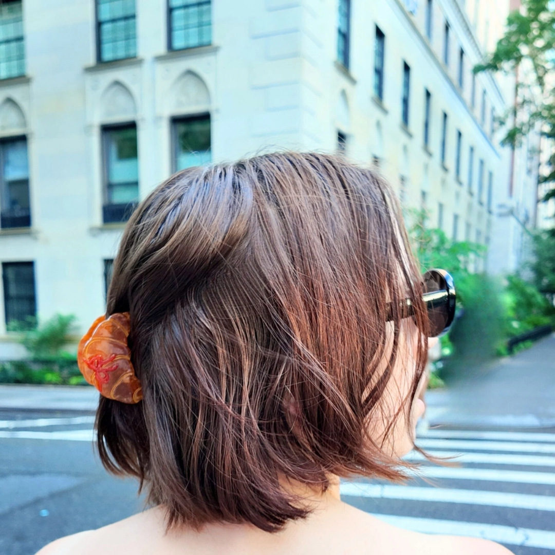 Håndmalet croissant hårklemme til hverdagens frisurer.