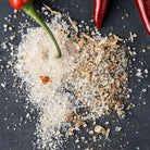 Ingredienser: Havsalt 96%, chiliflager*, tørret bird’s eye chili*, tørret cayennepeber*, tørret/ ingefær*. // havsalt 87%, skalotteløg* 5%, ramsløg* 4%, hvidløg* 3%, persille*. * = økologisk