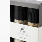 Gaveæsken indeholder økologisk Secret Blend, som består af salt blandet med lavendel, soltørrede tomater, sort peber, timian, rosmarin og hvidløg. Alle de urter og krydderier, som du skal bruge til at forvandle et hverdagsmåltid til en oplevelse. Det er hemmeligheden ved denne blanding. Hvis du ønsker at give smagsnuancerne i dine asiatiske og mexicanske retter et løft, er den økologiske salt med hvidløg og rød chilipeber løsningen. Den er lige så velegnet til pastaretter, hvis du vil gøre dem mere krydrede.