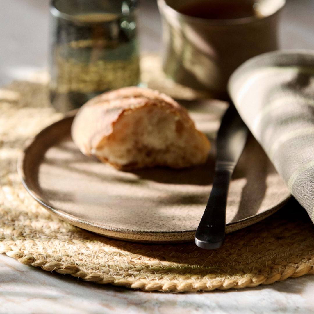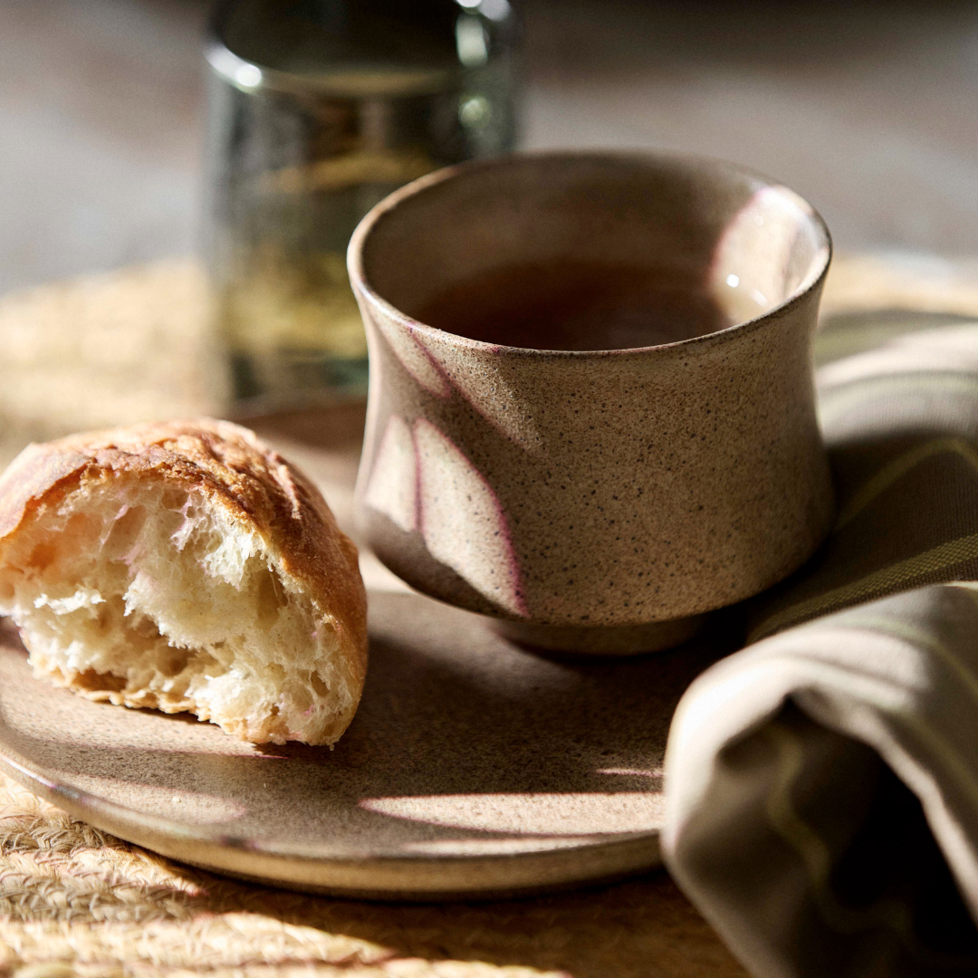 Inez tallerkenen er fremstillet i keramisk stentøj, som er et materiale kendt for sin robusthed og tæthed. Stentøj brændes ved høj temperatur, hvilket giver en tæt og holdbar overflade, der tåler daglig brug uden at blive porøs eller miste sin finish. Glasuren er mat og sandfarvet og tilfører tallerkenen et roligt, naturligt udtryk, som passer godt til moderne hjem med neutrale farvetoner og enkle, skandinavisk inspirerede indretninger. Den let hævede kant er ikke kun et æstetisk valg, men giver også en praktisk funktion ved at holde maden samlet på tallerkenen og give et mere færdigt, præsentabelt udtryk. Overfladen er fødevaregodkendt, og tallerkenen tåler opvaskemaskine, så den er nem at holde ren i en travl hverdag. Stentøj kan naturligt variere i farve og overflade fra stykke til stykke, og det er netop det, som giver materialet sin personlighed og gør hvert enkelt stykke til noget for sig selv.