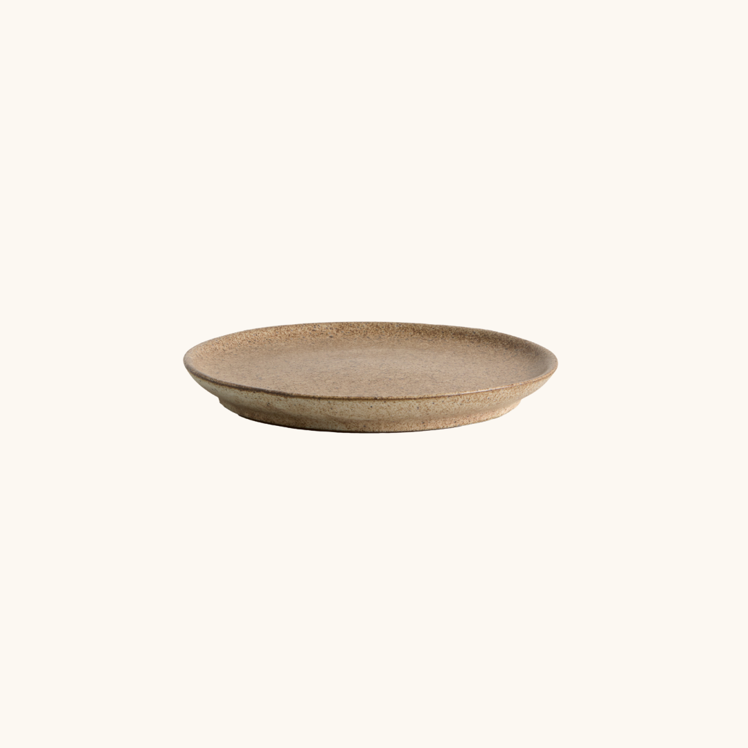 Den lille kagetallerken sand er fremstillet i stentøj, som er et af de mest holdbare keramikmaterialer til daglig brug. Stentøj er tæt i strukturen og tåler temperaturudsving godt, hvilket gør det velegnet til brug med både varme drikke og kolde desserter. Glasuren er mat og sandfarvet med de naturlige variationer, som opstår i den håndlavede proces, og det er præcis de variationer, som giver mat stentøj tallerken sit levende, organiske udtryk. Den let hævede kant er en lille, men gennemtænkt detalje, som holder serveringen samlet og giver tallerkenen en rolig, afbalanceret form. Materialet er desuden robust nok til at holde til daglig brug gennem mange år, uden at farven falmer eller overfladen mister sin karakter. Med en diameter på 13,5 cm og en højde på 1,5 cm er den lille og let at stable og opbevare. Den tåler opvaskemaskine, så rengøring er ligetil efter brug.