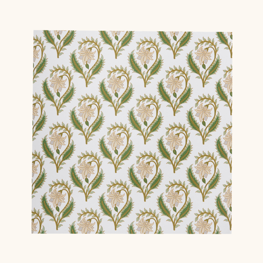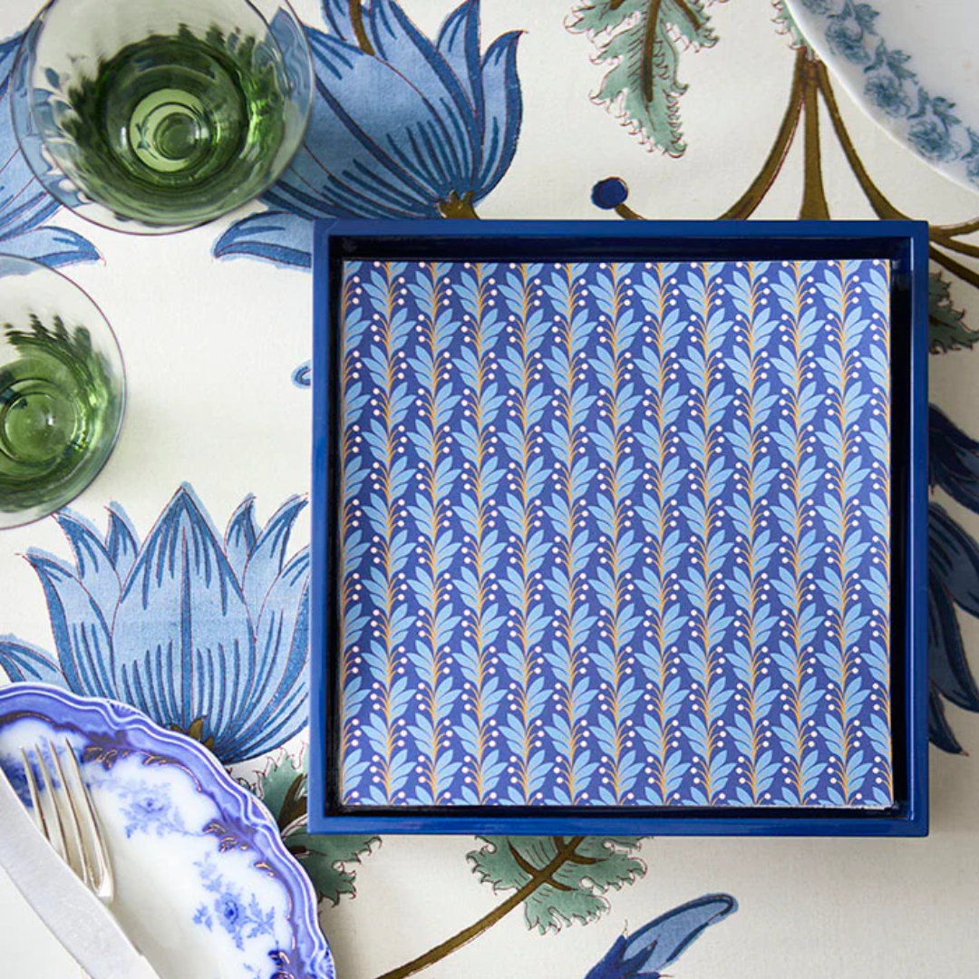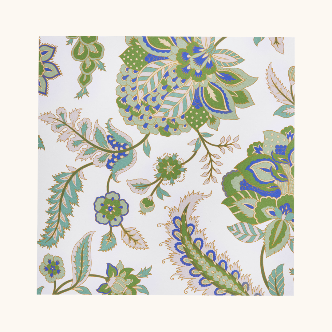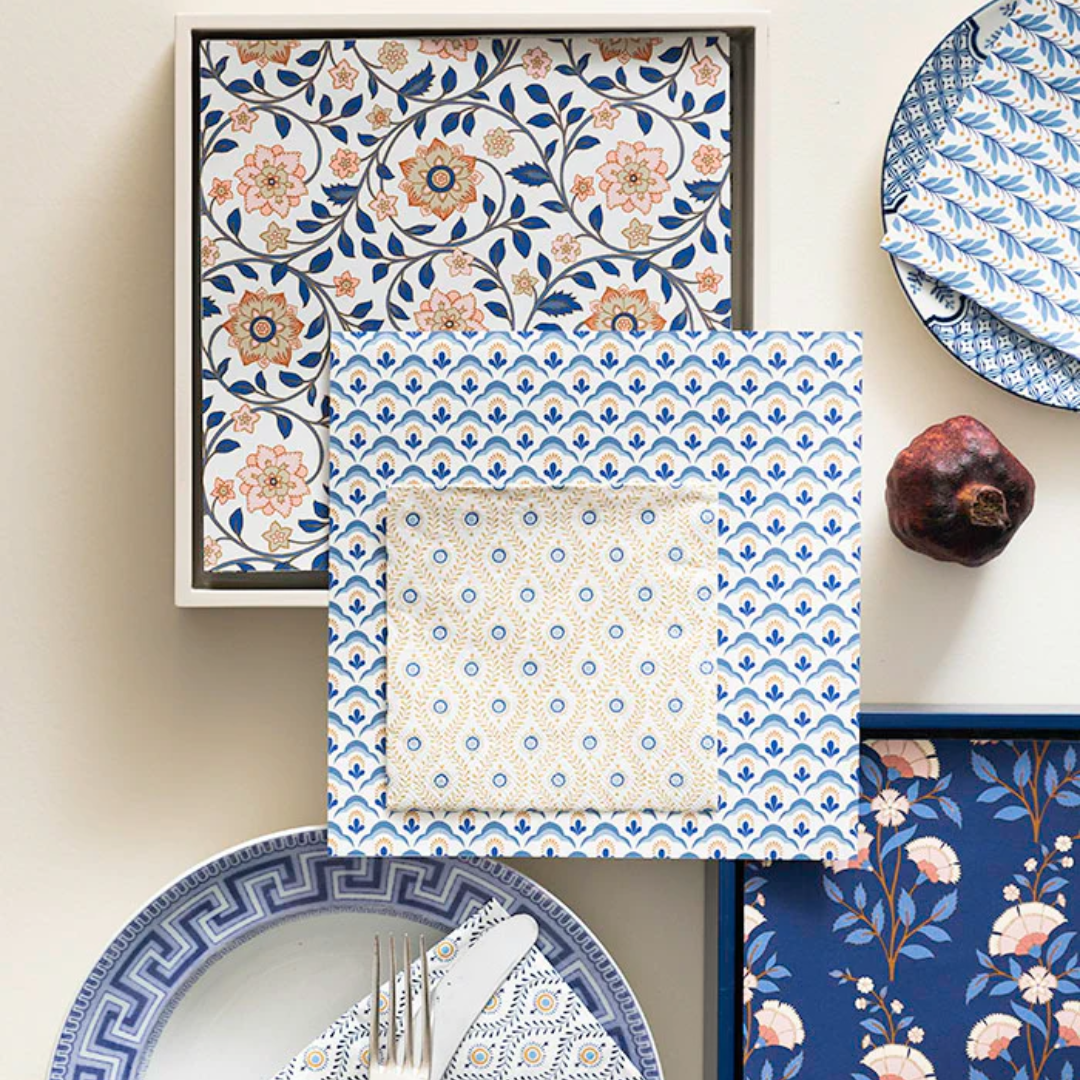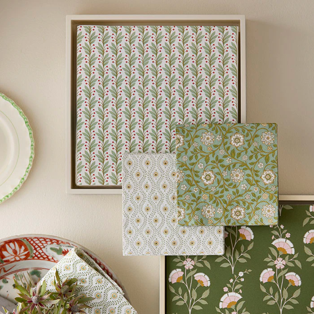 Papirservietterne fra Bungalow kommer i en king-size pakke med 50 stykker og er trykt med brandets karakteristiske blomster- og botaniske motiver i klare, mættede farver.