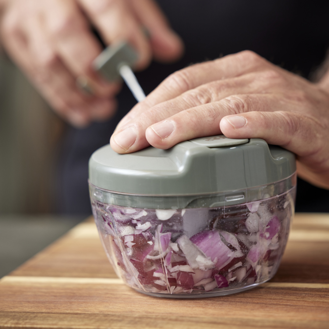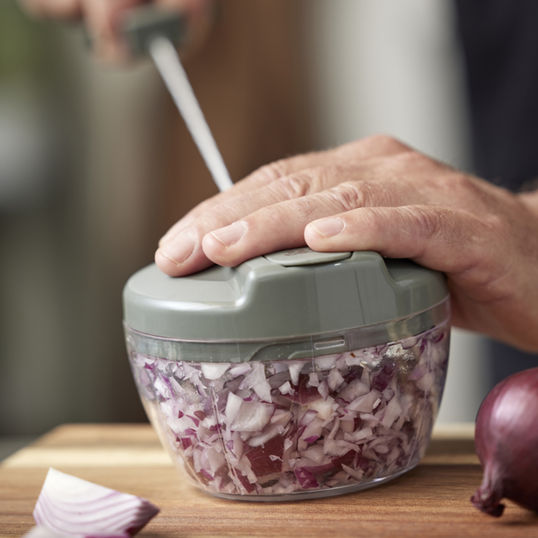 Minihakkeren fra By Tareq Taylors er den hurtige løsning, når du skal hakke løg, hvidløg, krydderurter, frugt eller ost uden at trække den store foodprocessor frem.