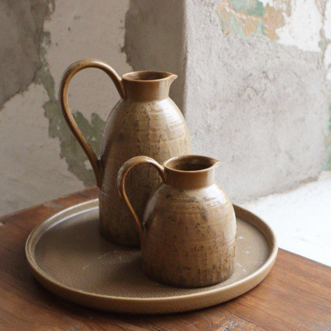 Stentøjskaraffel i jordfarver fra Jakobsdals.
