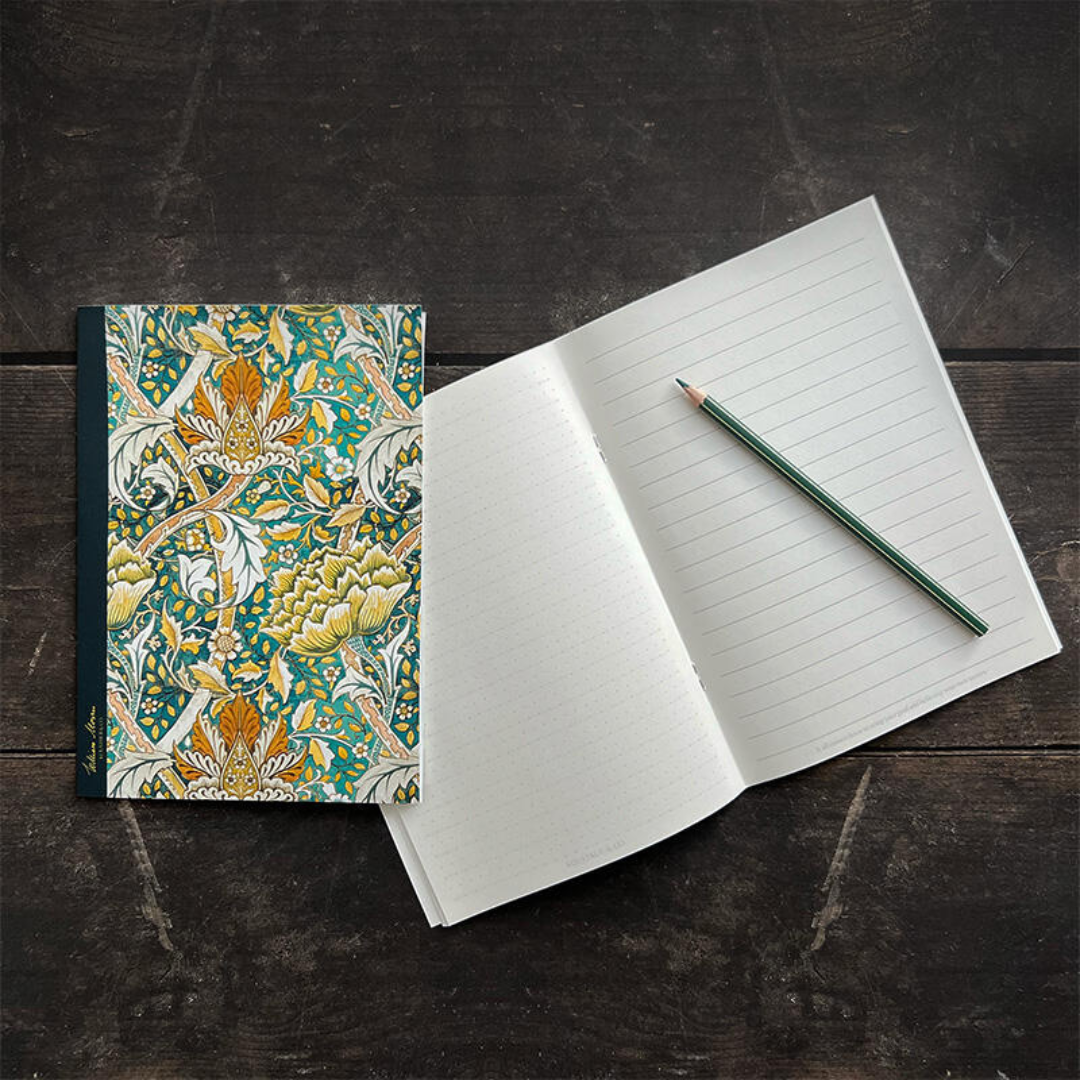 Et smukt noteshæfte med originalt William Morris-motiv – perfekt til studiet, arbejdet eller hverdagsnoter.