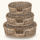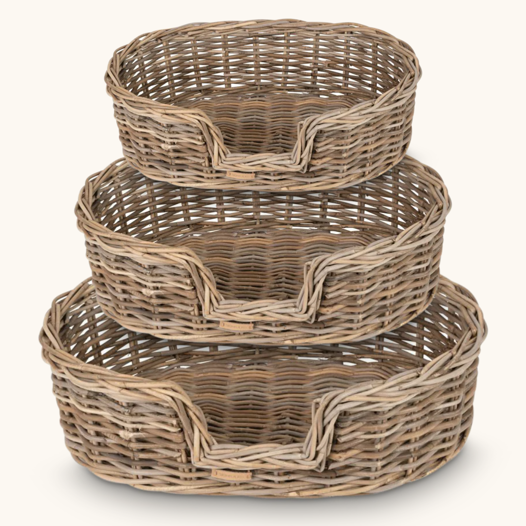Naturlig og hyggelig hundekurv i flettet rattan.