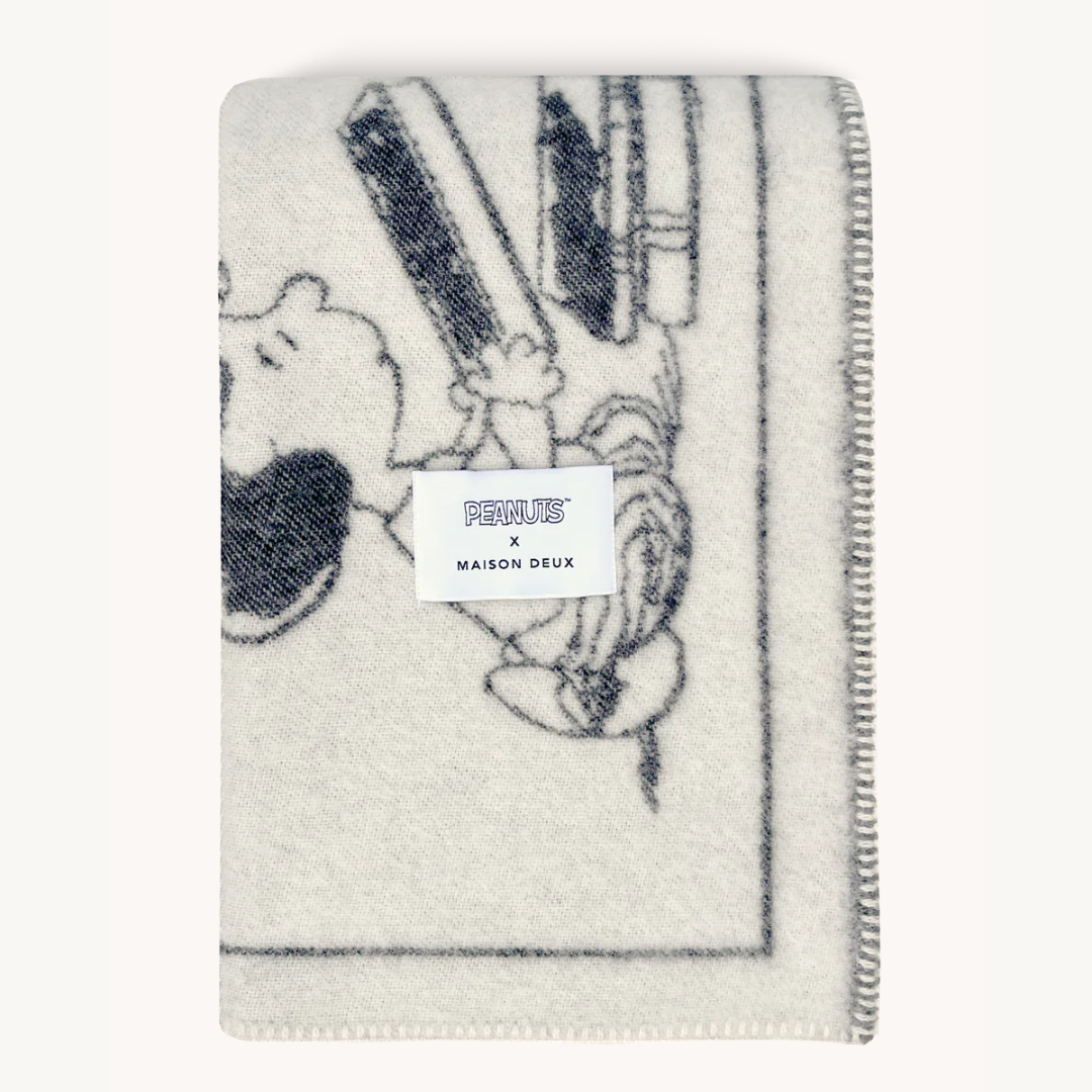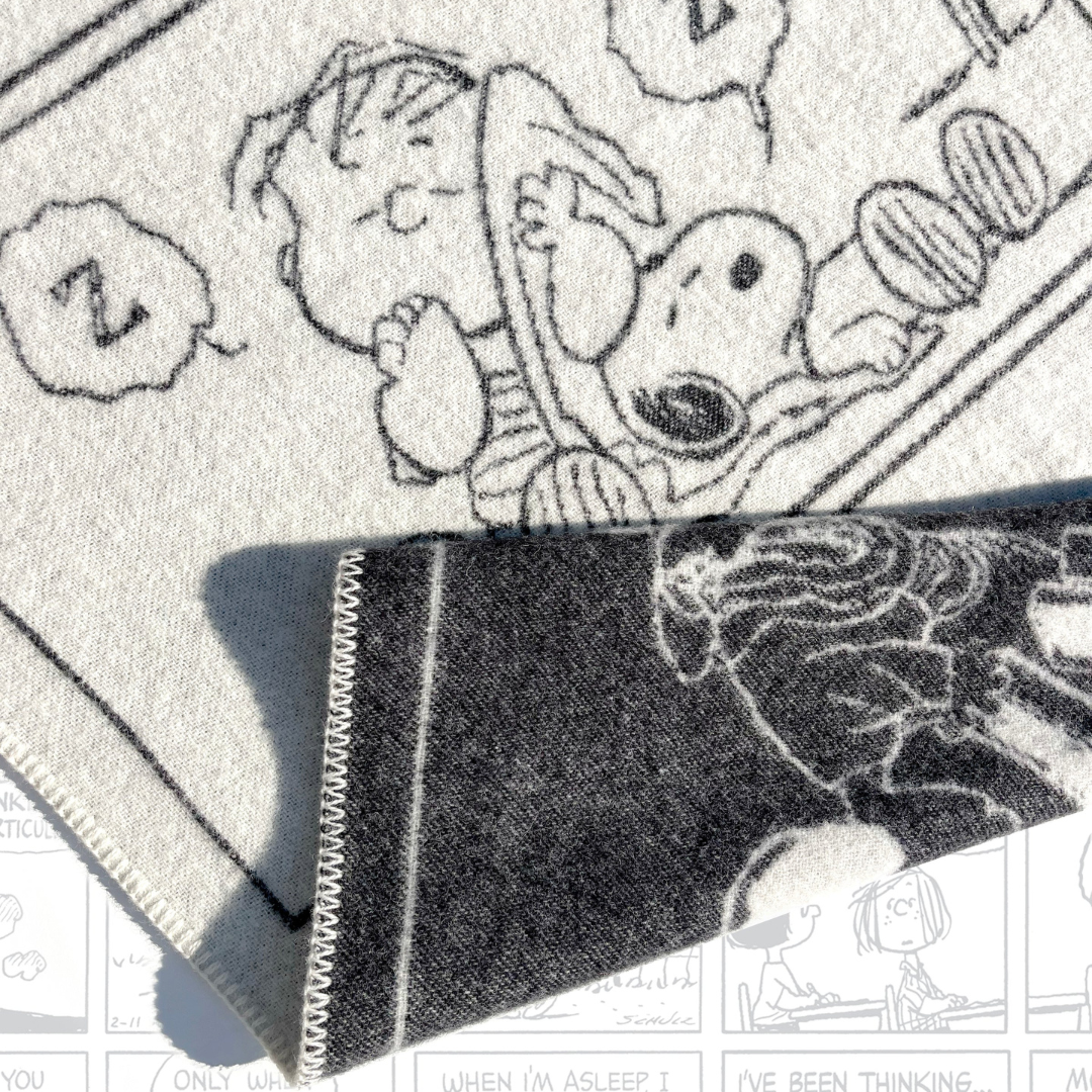 Tag et skridt tilbage til barndommens klassiske tegneserieverden med Peanuts (Radiserne) uldplaiden Comic ZZZ fra Maison Deux, hvor de ikoniske karakterer Snoopy, Linus og Lucy (Nuser, Tomas og Trine) bringes til live i et smukt vævet uldtæppe.