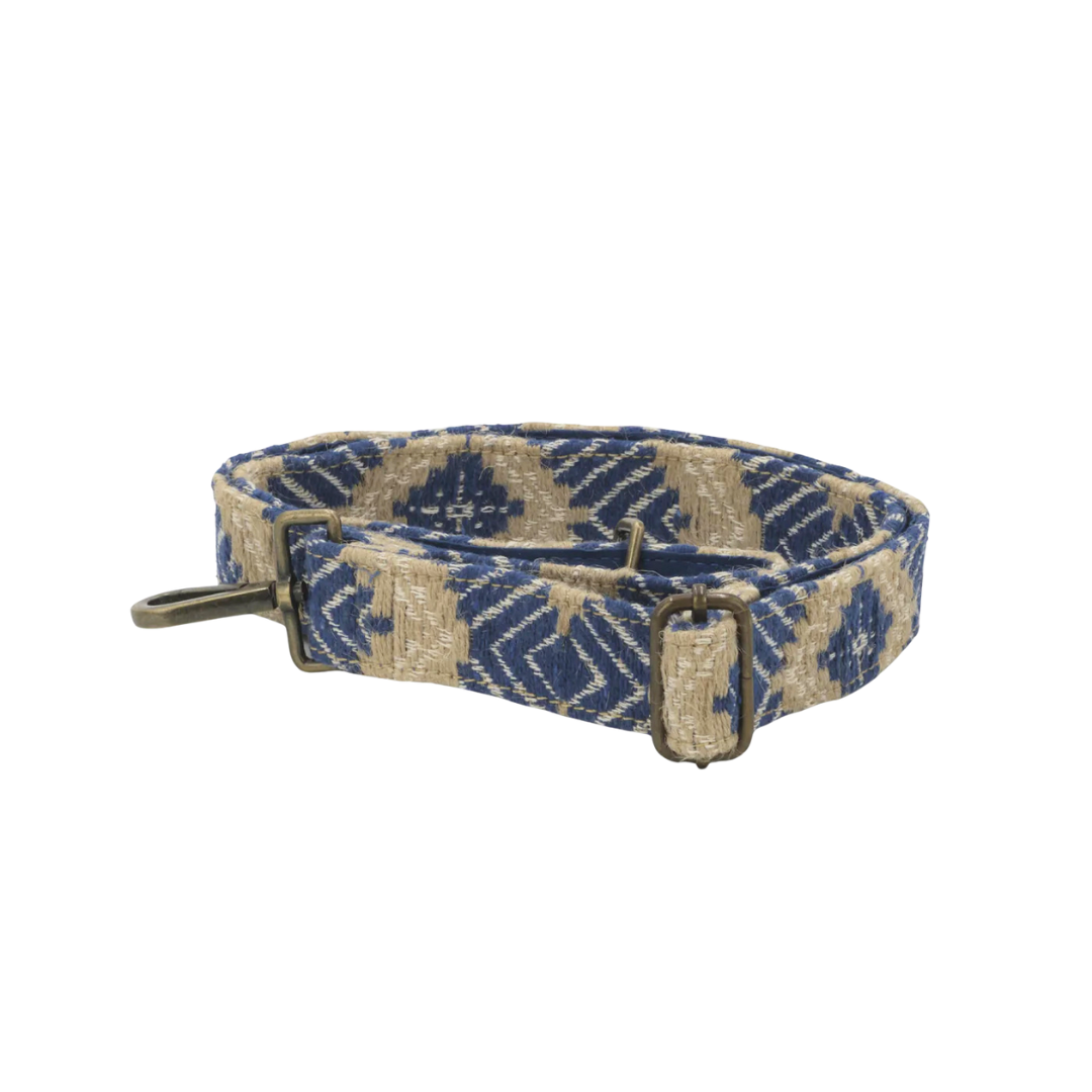 Den vævede rem fra Luna Moon er lavet af jute, bomuld og viskose og har en bagside i 100% økologisk bomuld. Den er designet som tilbehør til den lille La Rambla taske og gør det nemt at bære tasken crossbody eller over skulderen.