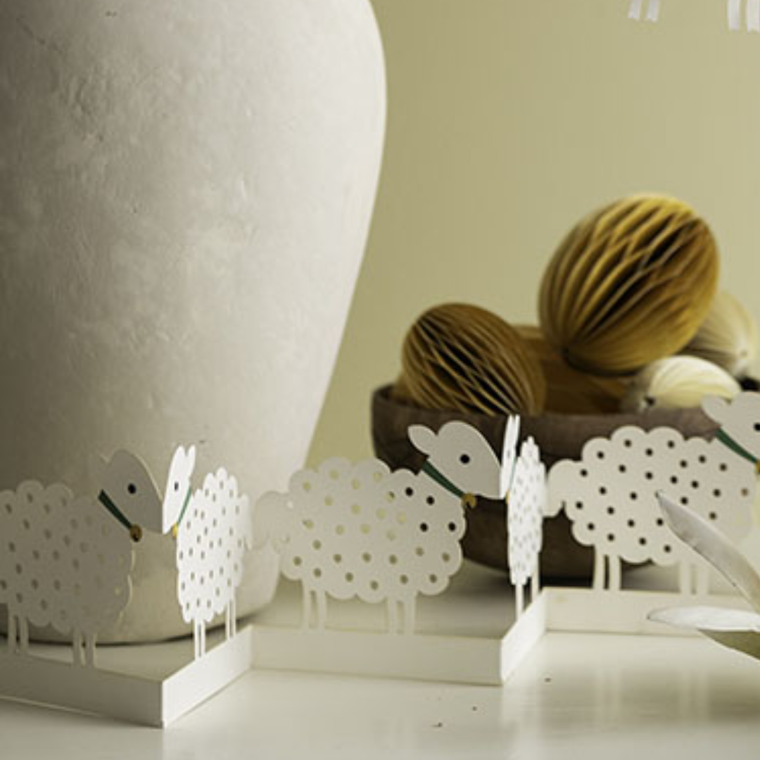 Laserskåret bordguirlande med påskelam og fine detaljer.