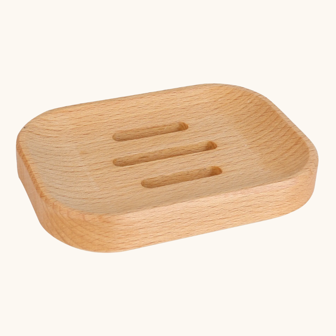Den enkle sæbeskål i massivt bøgetræ, holder sæben tør og badeværelset pænt.