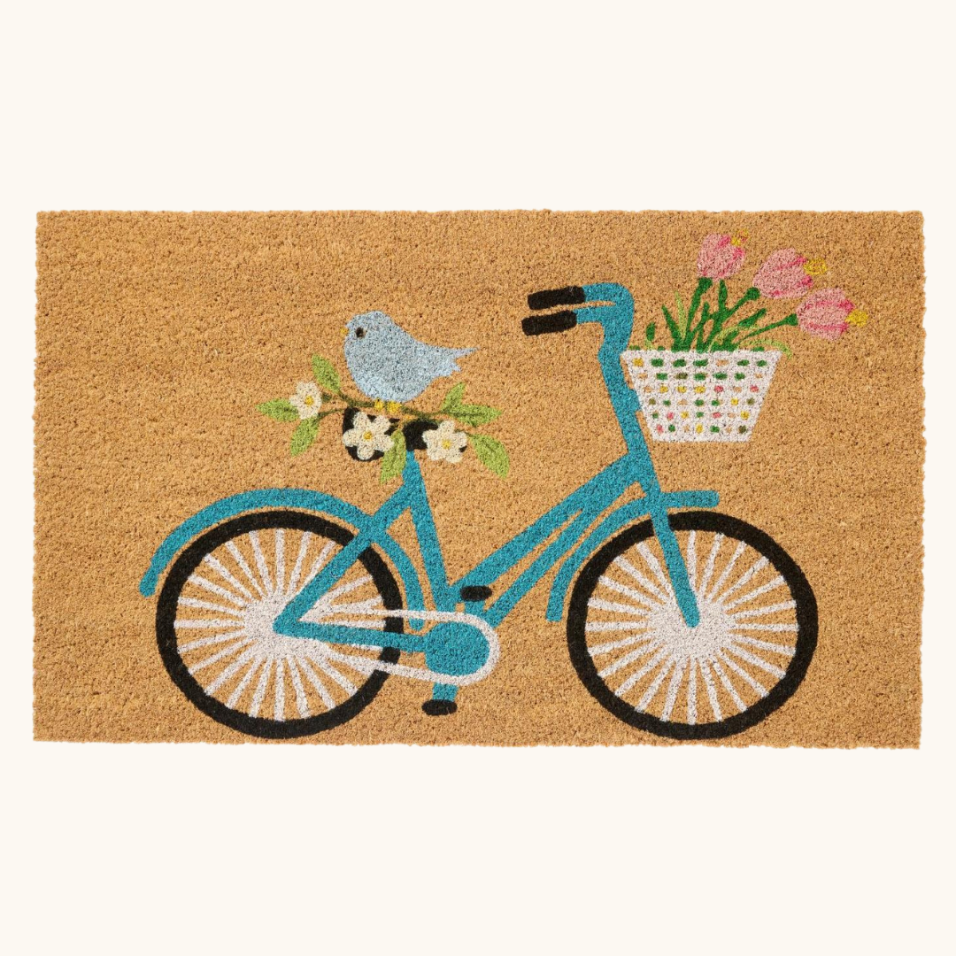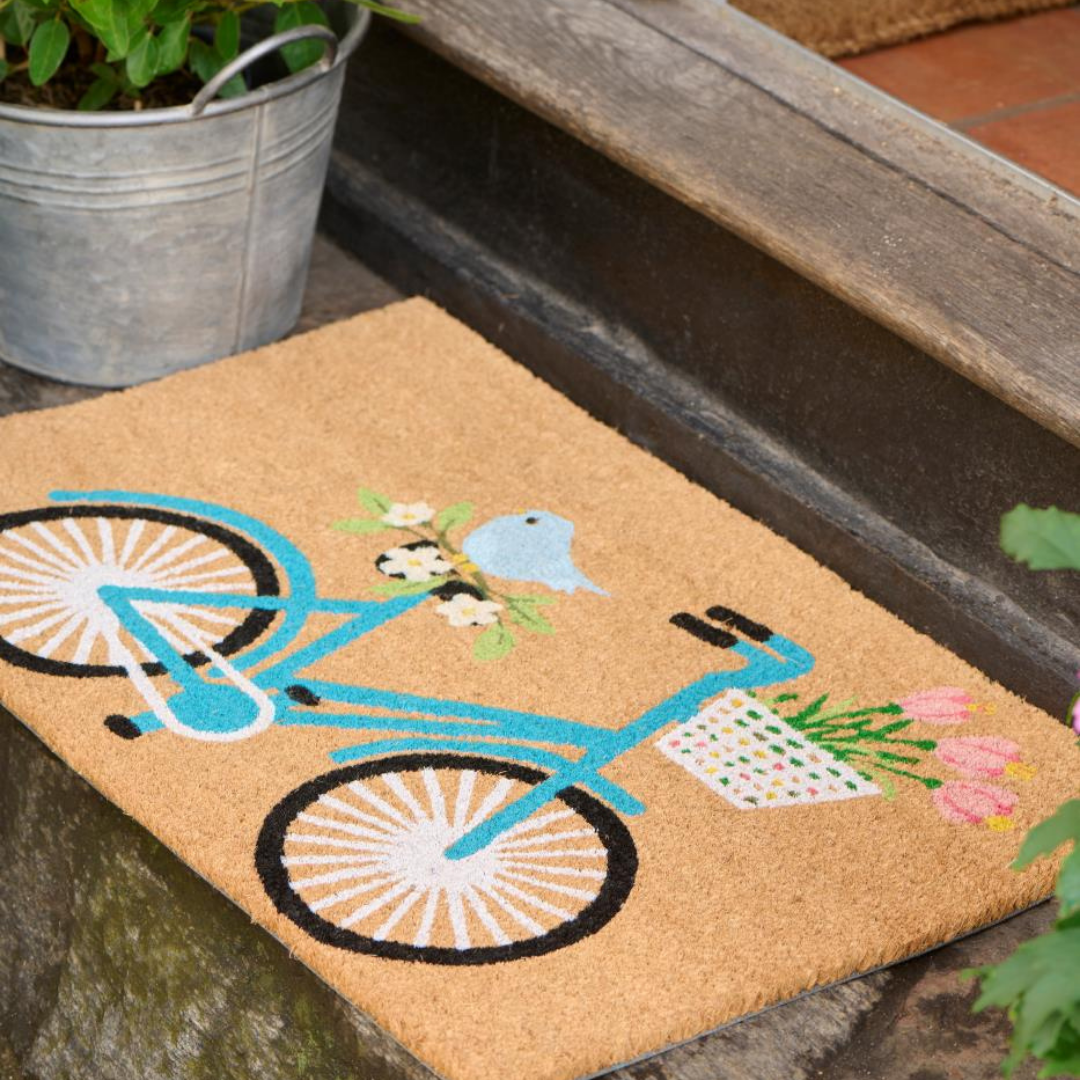 Skab en hyggelig velkomst med denne søde cykel-dørmåtte.