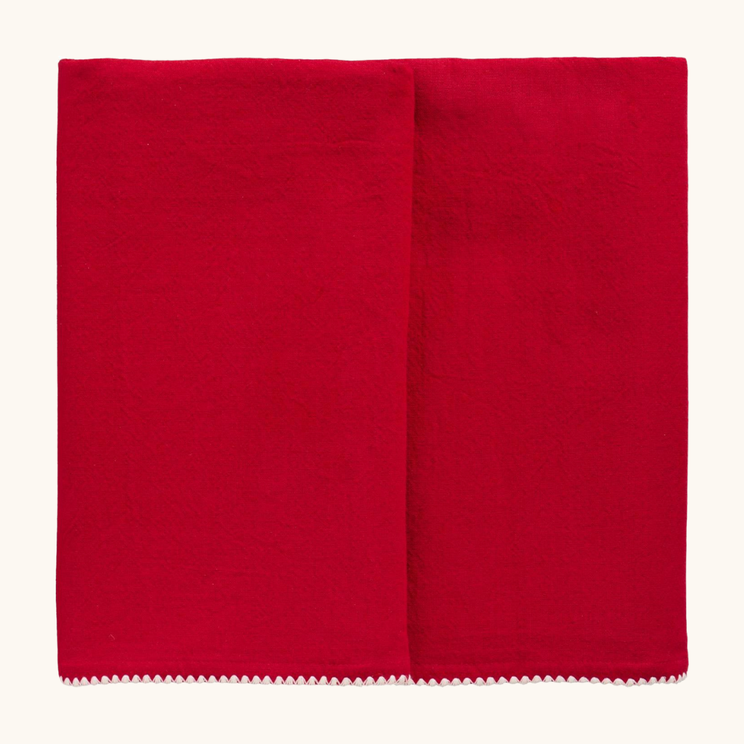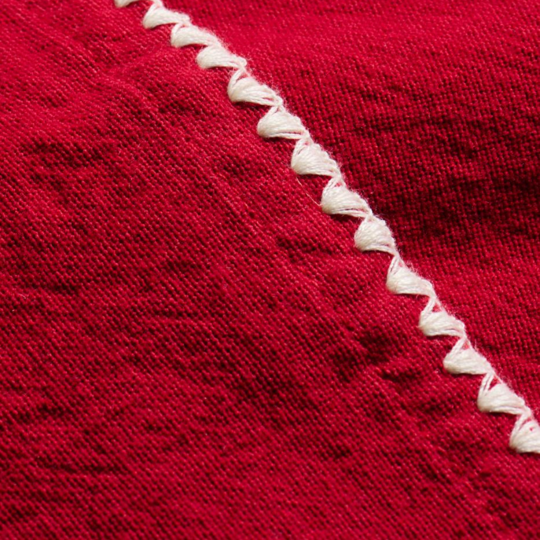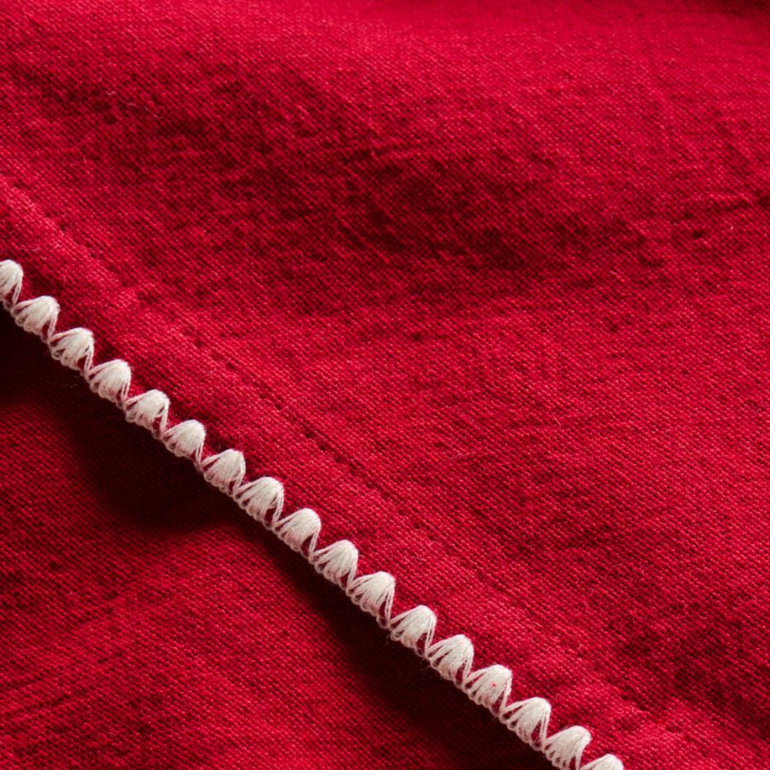 Dugen har fine hvide stikninger langs kanterne, som tilføjer et klassisk og hyggeligt udtryk – perfekt til både jul og andre festlige lejligheder.