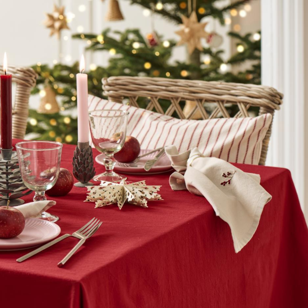 Skab en varm og stemningsfuld atmosfære omkring julebordet med den smukke røde Dagmar dug fra Ib Laursen.