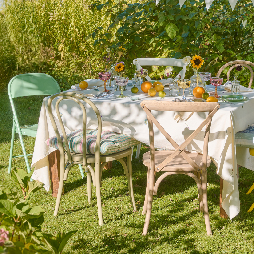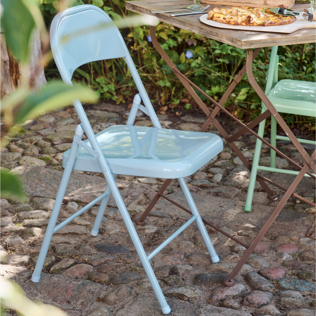 De klare farver giver et friskt udtryk, og stolen er nem at folde ud, stille frem og pakke væk igen. Ideel til køkkenet, terrassen, gæster eller som en ekstra stol i haven.