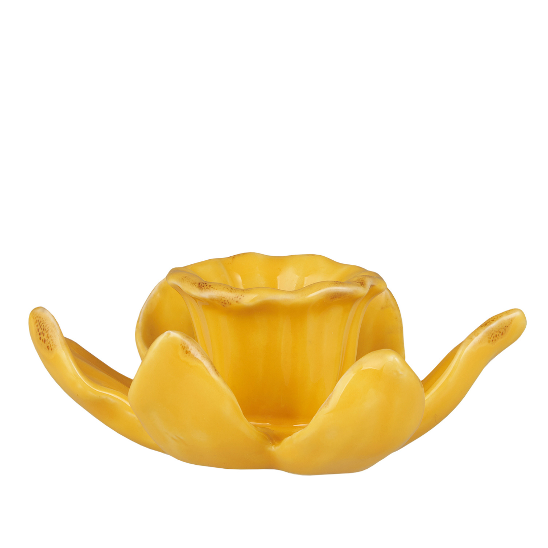 Formen som en gul påskelilje giver et lyst og varmt udtryk, der løfter alt fra borddækning til en hyggelig vindueskarm.