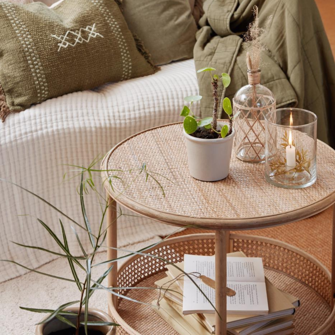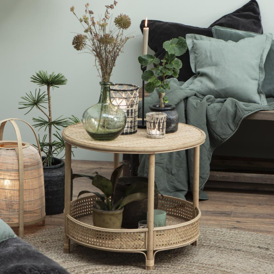 Det runde rattanbord fra Ib Laursen, er et lille fint møbel, der bringer varme og naturlige materialer ind i din indretning.