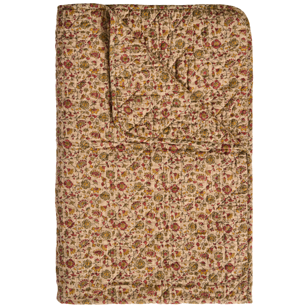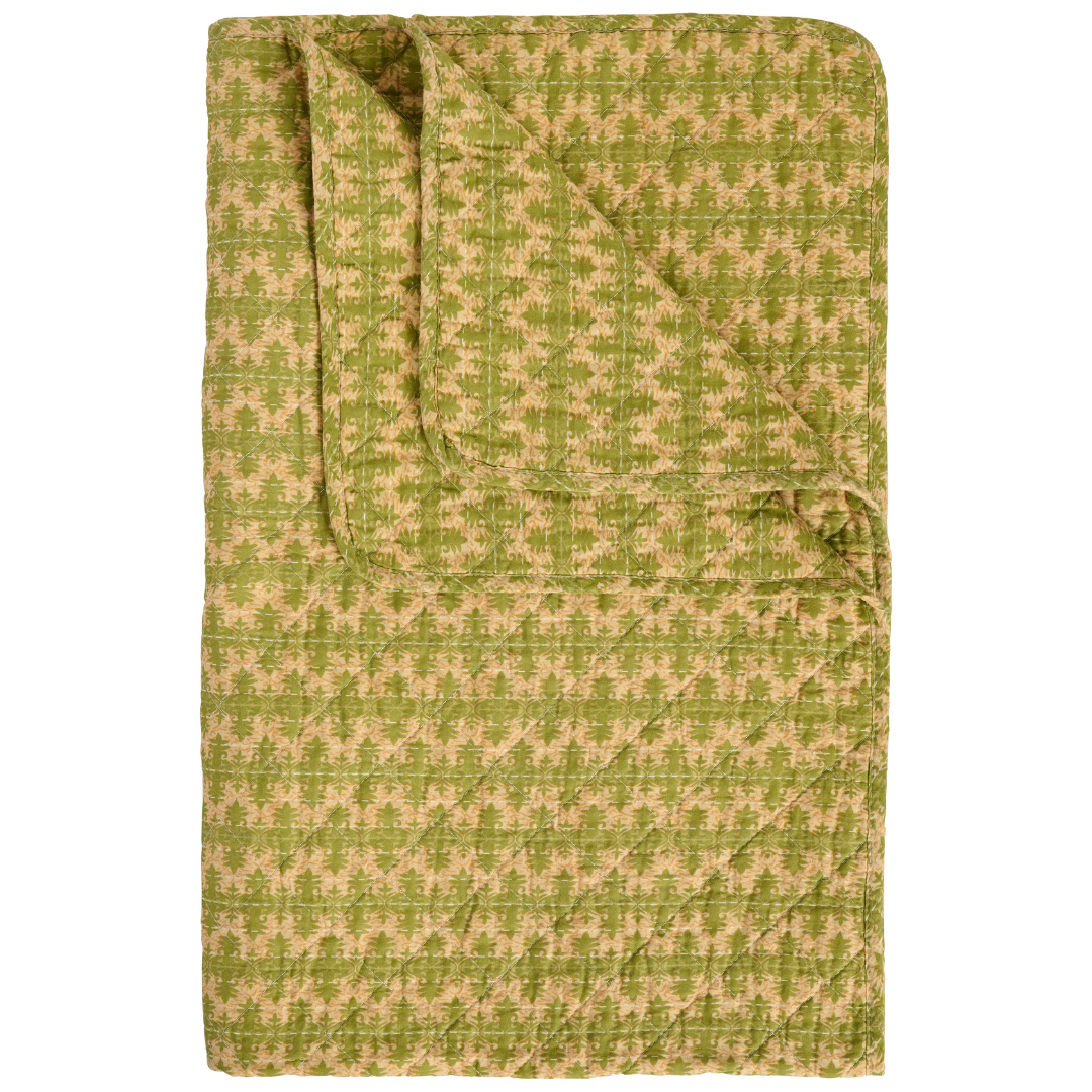 Det quiltede design og de fine mønstre giver varme og stemning i hjemmet – uanset om du bruger tæppet til afslapning i sofaen eller som en praktisk løsning til hverdag.