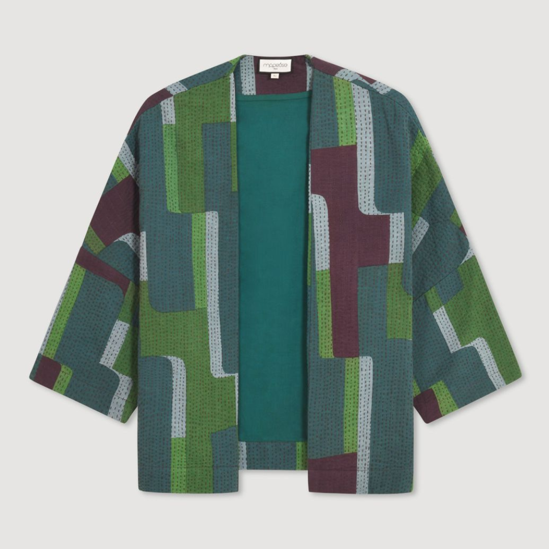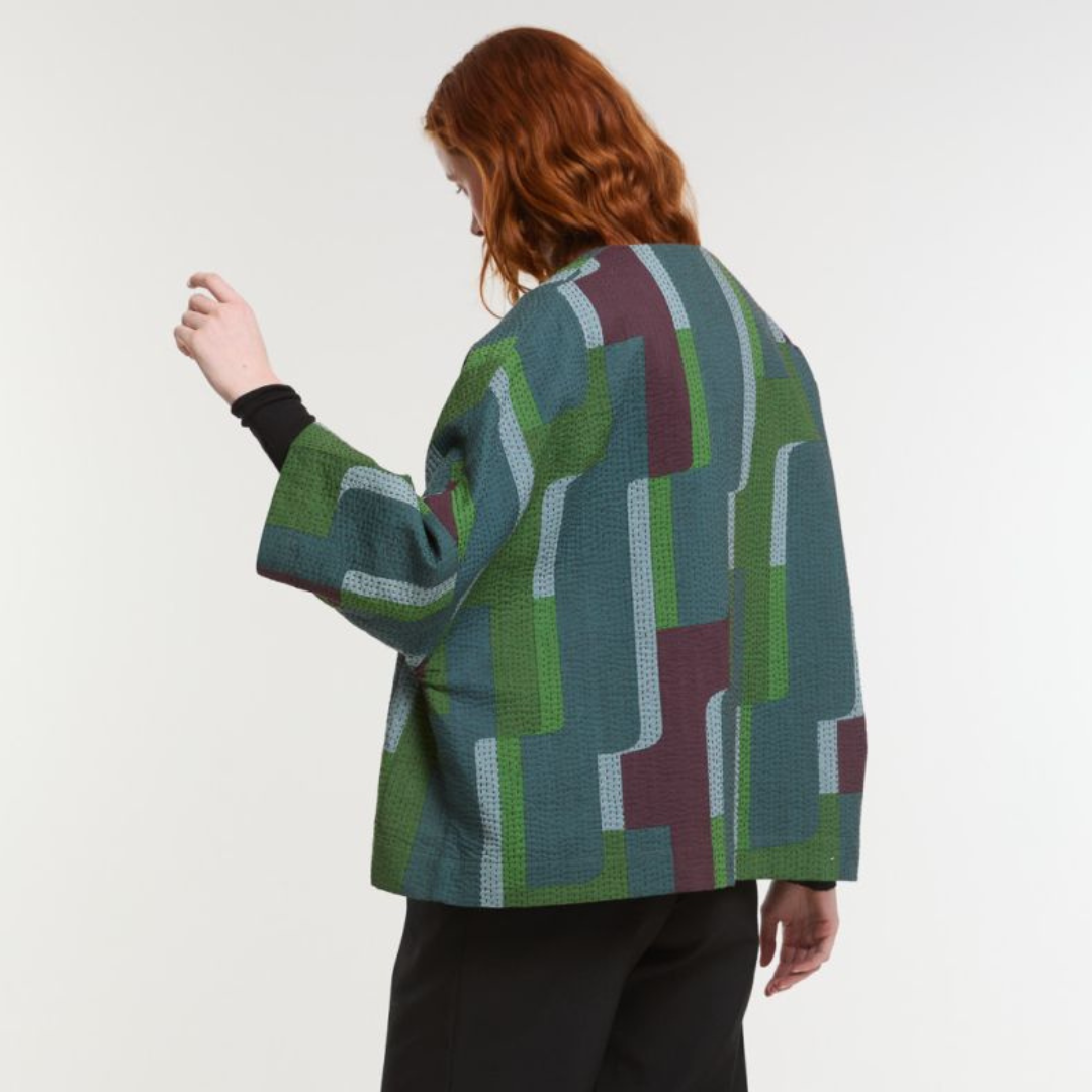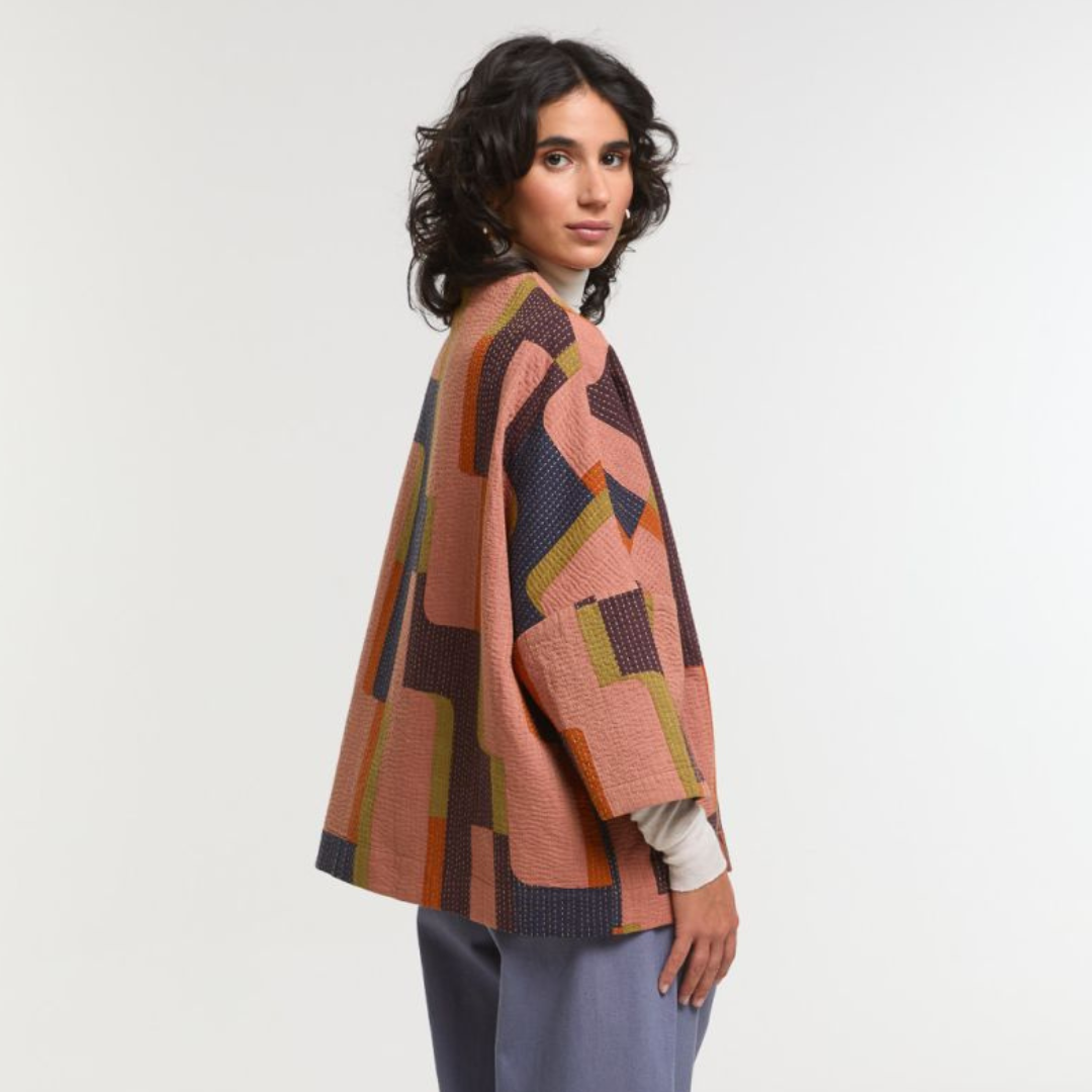 En smuk og unik jakke fra Mapoesie Paris, fremstillet i 100% bomuld og håndbroderet efter den traditionelle indiske kantha-teknik.