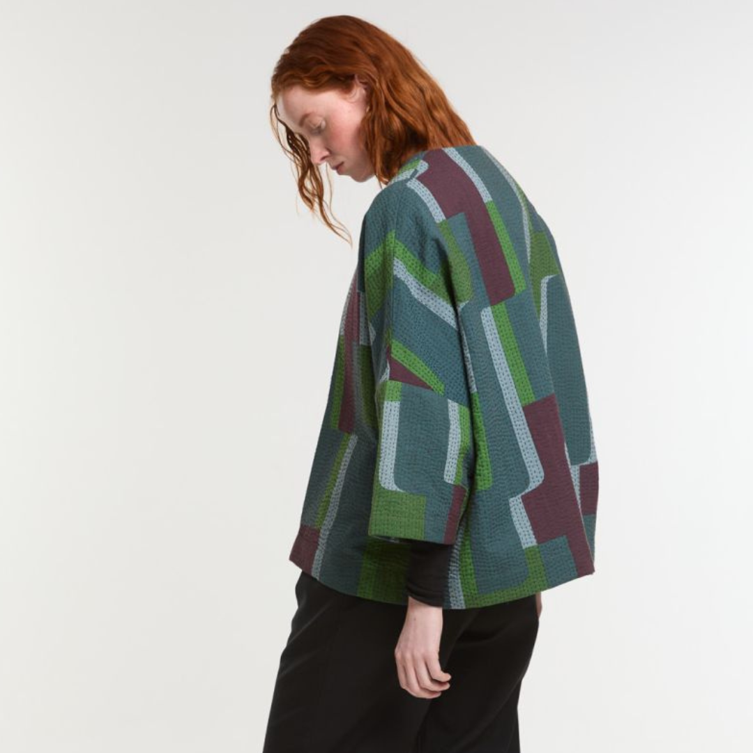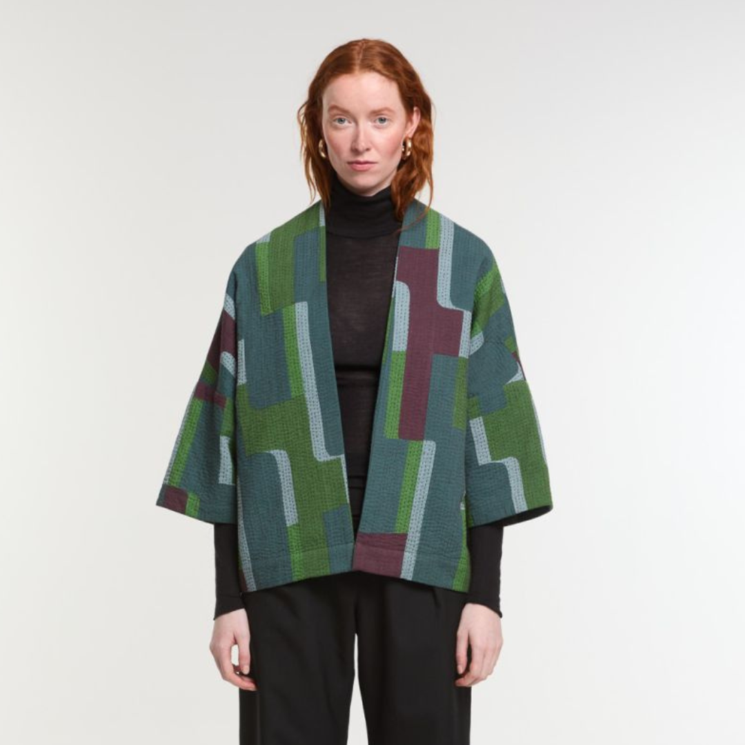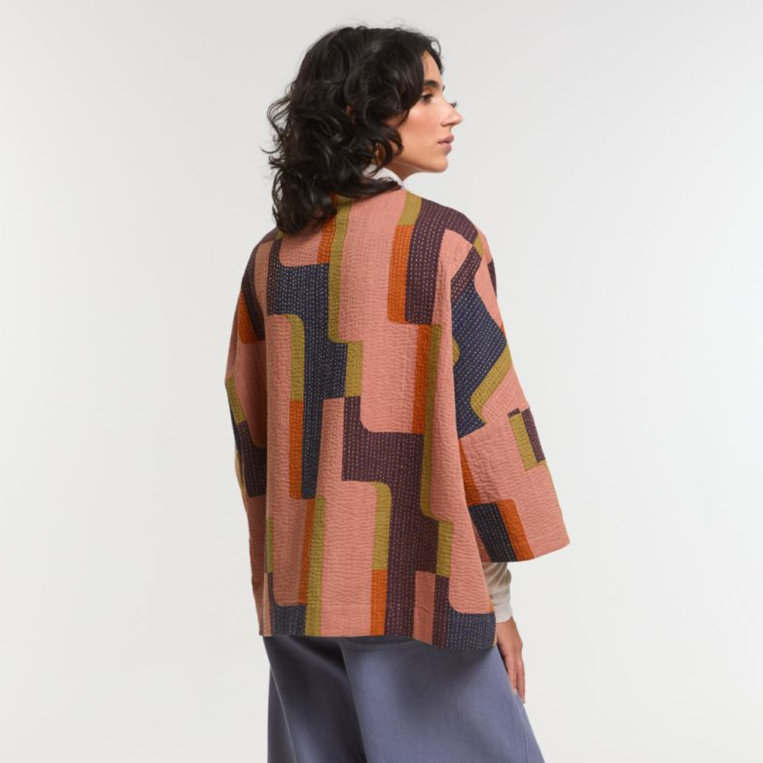 En smuk og unik jakke fra Mapoesie Paris, fremstillet i 100% bomuld og håndbroderet efter den traditionelle indiske kantha-teknik.