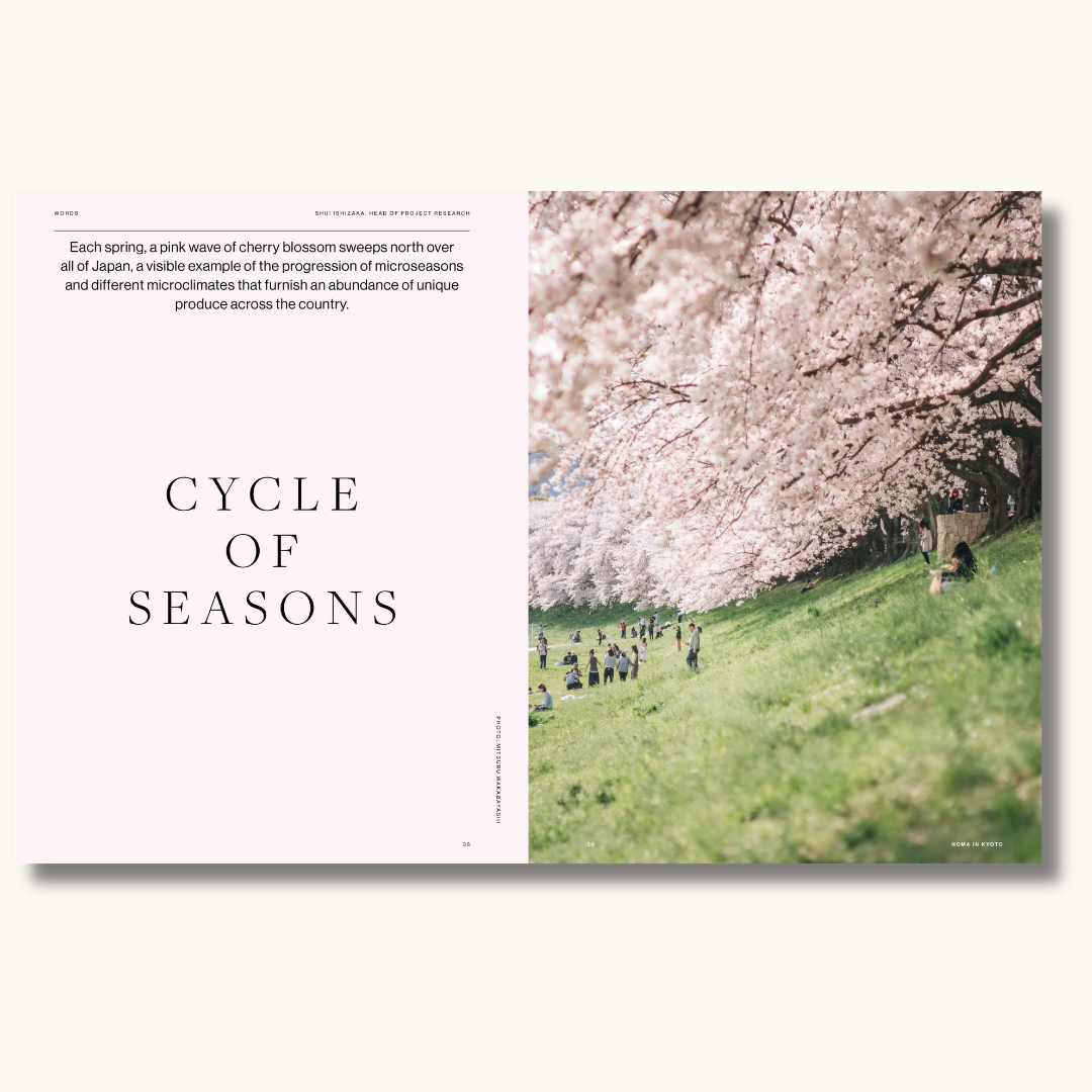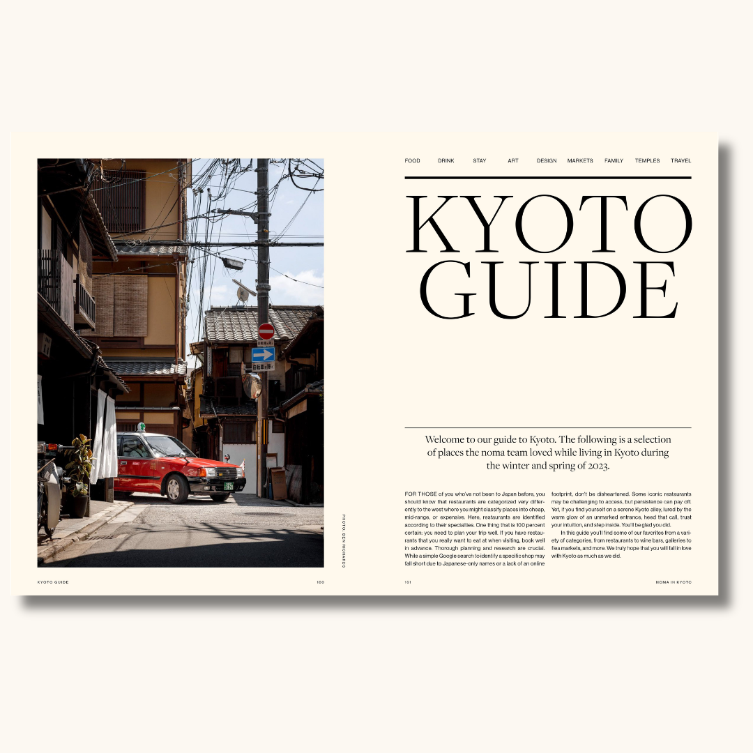 Bogen er ikke blot et souvenir fra en pop-up. Den er et visuelt og fortællemæssigt portræt af Kyoto — fra bjerge og templer til misofabrikker, nudelbutikker og den pulserende kaffekultur. Under pandemien stødte Redzepi på billeder af det nybyggede Ace Hotel i Kyoto, og ideen om en pop-up tog form. De tre år, som gik fra idé til åbning, gav teamet tid til at udforske Kyoto til bunds: dagsture, weekendudflugter og systematisk kortlægning af byens restauranter, kunstscene og ramenkultur. Alt det arbejde er samlet i denne Noma Kyoto bog, som fungerer både som opslagsværk og som læseoplevelse.