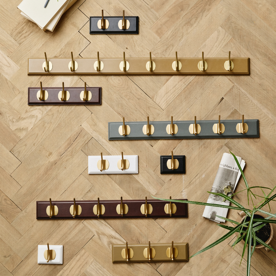 Knagerække i træ med messingknager – EDGY til entre, gang og soveværelse
