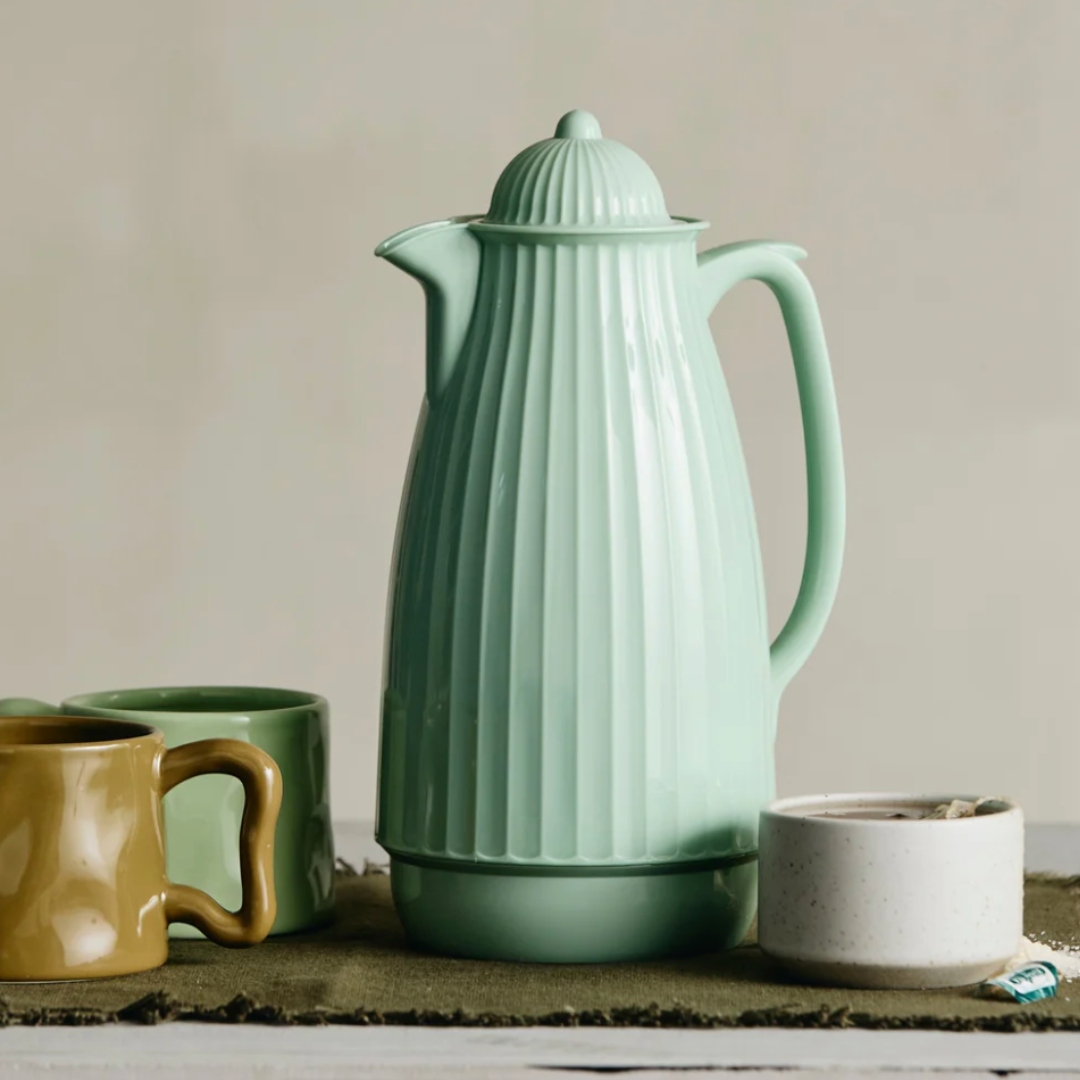 Carvi er en termokande på 1 liter fra Nordal, som er lavet til at holde kaffe, te og andre varme drikke ved den rette temperatur i flere timer. Med sit ribbede ydre og sin slanke silhuet er det en isoleret kande, som passer naturligt ind på bordet – både til hverdagsbrug og når du har gæster. Den findes i fire farver, så du kan vælge den udgave, som passer til dit køkken eller din dækning.