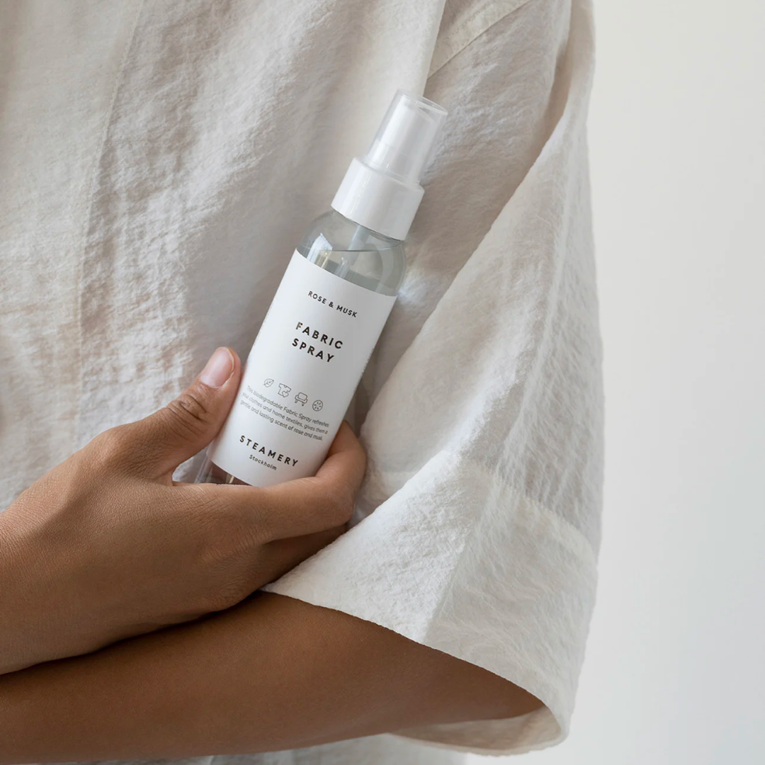 En hurtig og nem måde, at friske dit tøj og tekstiler op på, er med en tekstil spray. Tekstil Sprayen fra Svenske Steamery, giver en blid og varig duft, af rose og musk.